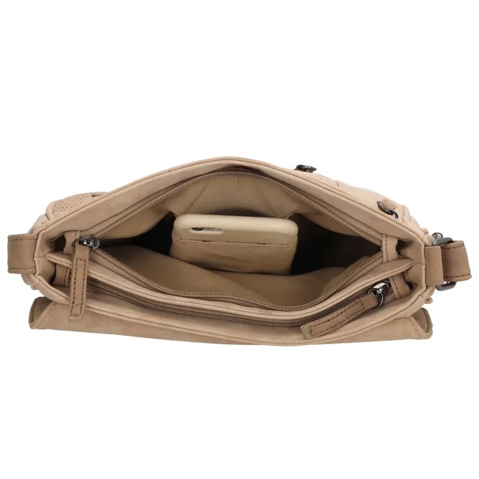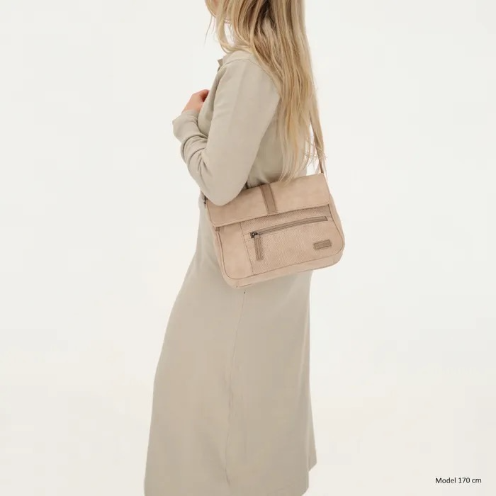 De tas sluit veilig met een ritssluiting en beschikt over een praktische overslag, wat zorgt voor een moderne en functionele uitstraling. De verstelbare schouderband (niet afneembaar) maakt het mogelijk om de tas comfortabel op jouw gewenste lengte te dragen.