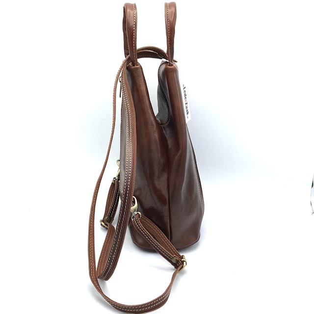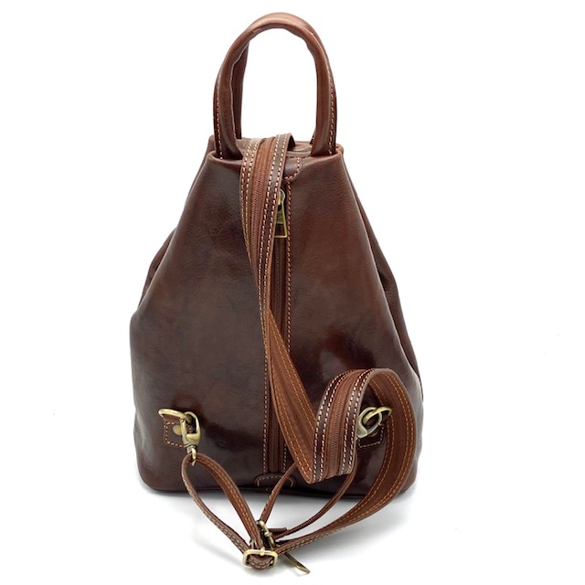 Deze in Toscane handgemaakte 100% lederen rugtas is extra veilig. De fraaie rugtas heeft een enorm warme uitstraling. De kleur is fantastisch en een aanvulling op uw outfit. Voorzien van een rits sluiting in het midden en de schouderriem kunnen ook aan elkaar worden geritst.													Een handig voorvak en achtervak welke beide zijn voorzien van rits