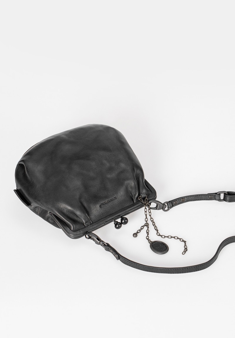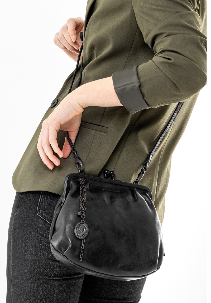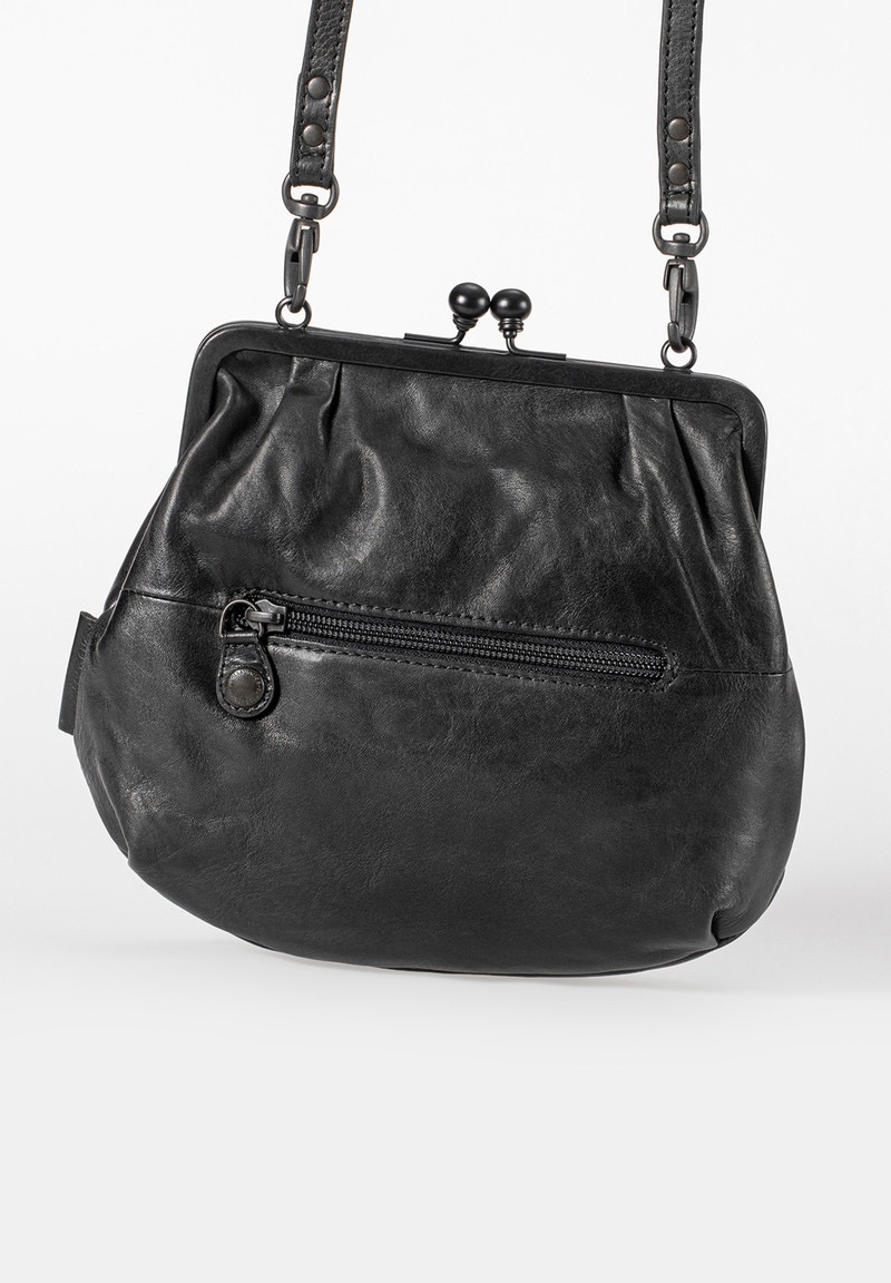 Mrs. Fortune Cookie is een echte meevaller gemaakt van zeer plantaardig gelooid premium rundleer met de gekreukte look die kenmerkend is voor Grandma's Luxury Club. De schoudertas met de charmante clipopening kan ook als stoere clutch zonder het riempje gedragen worden en wordt naast een goed doordacht interieur ook geleverd met een uitneembaar extra vakje en een schakelketting met een vintage hanger.