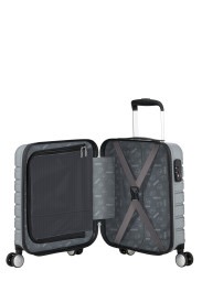De American Tourister Flashline Spinner Underseater in de kleur Sky Silver is de ideale handbagagekoffer voor korte trips, zakenreizen of als aanvulling op je grotere bagage. Dankzij het slimme ontwerp en de compacte afmetingen (45 x 35 x 20 cm) past deze koffer onder de vliegtuigstoel bij de meeste luchtvaartmaatschappijen – ideaal als underseater trolley.