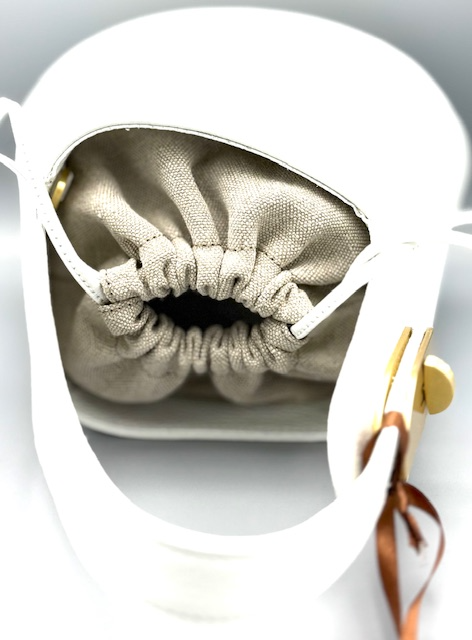 De Nymera Bucket onderscheidt zich door zijn elegante, druppelvormige silhouet — een zachte, vloeiende vorm die de sierlijke bewegingen van water en de subtiele dynamiek van de wind weerspiegelt. De verfijnde, subtiele metalen sluiting aan de zijkant geeft de tas een delicate uitstraling en is bovendien voorzien van een quick-release systeem, waardoor het handvat moeiteloos geopend kan worden voor gemakkelijke toegang tot het interieur.