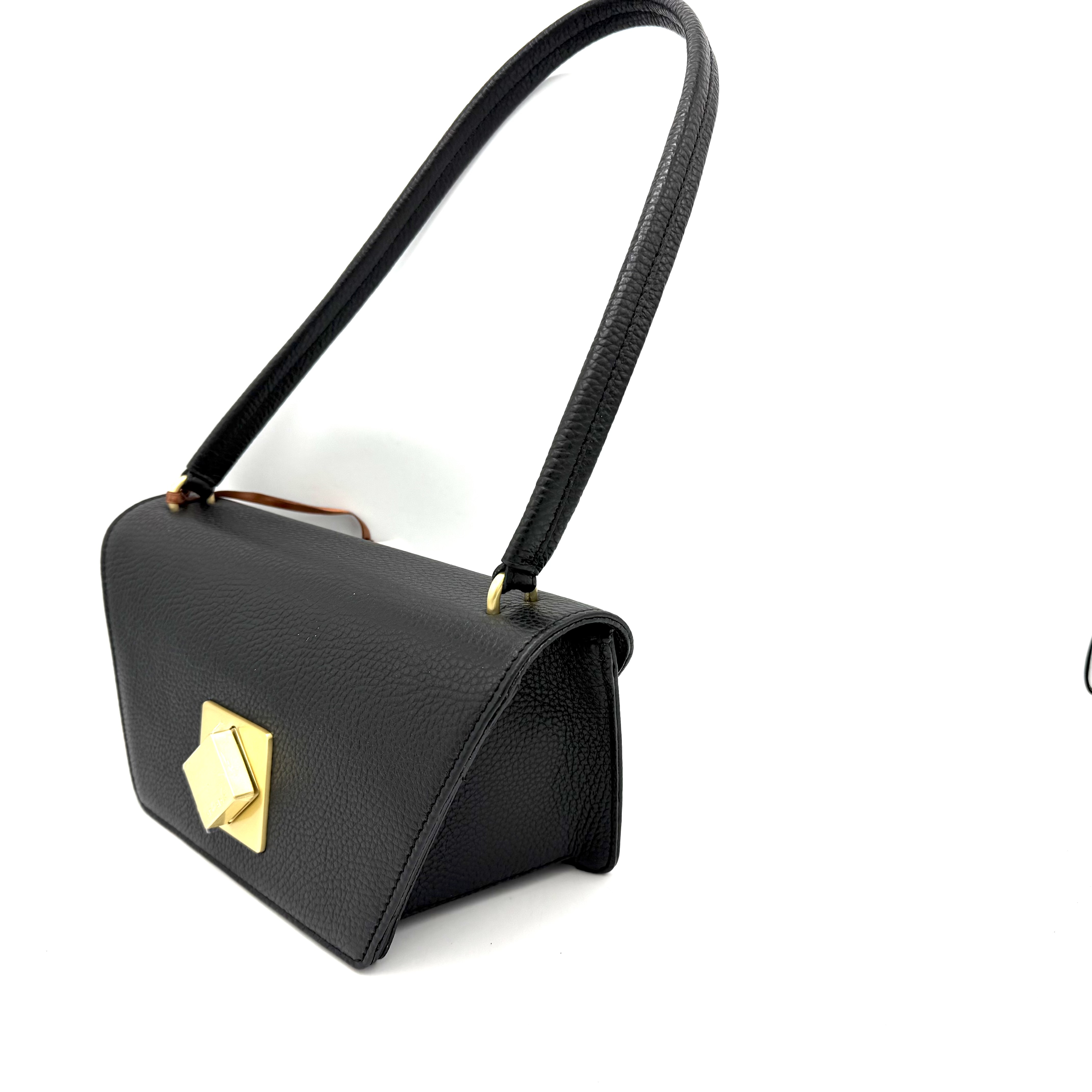 De Arcadia Trapeze combineert geometrische lijnen en een oversized front turn lock om een ​​eigentijdse stijl te creëren die toch chic is. Een design dat opvalt en perfect past bij avondoutfits.