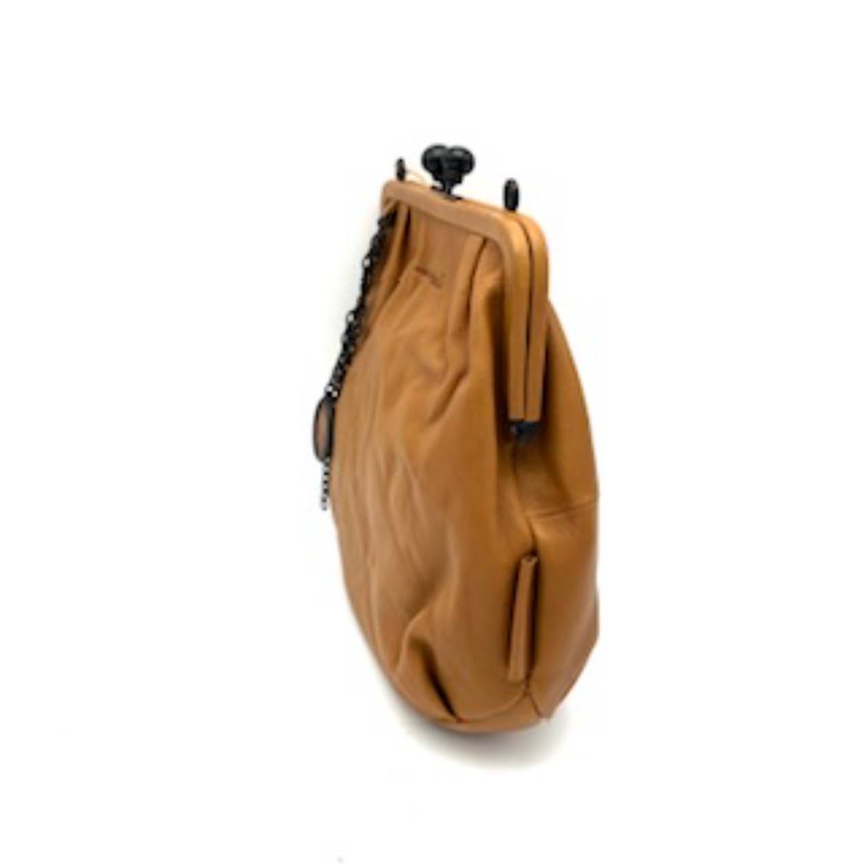 De tas heeft een nostalgische clip-sluiting en kan zowel als crossbody of als clutch gedragen worden — ideaal voor elke gelegenheid. Binnenin vind je een slim georganiseerd interieur, inclusief een uitneembaar extra tasje, een kaartvakje, een sleutelkoord en een praktische vakverdeling. De vintage ketting met hanger maakt het geheel helemaal af.