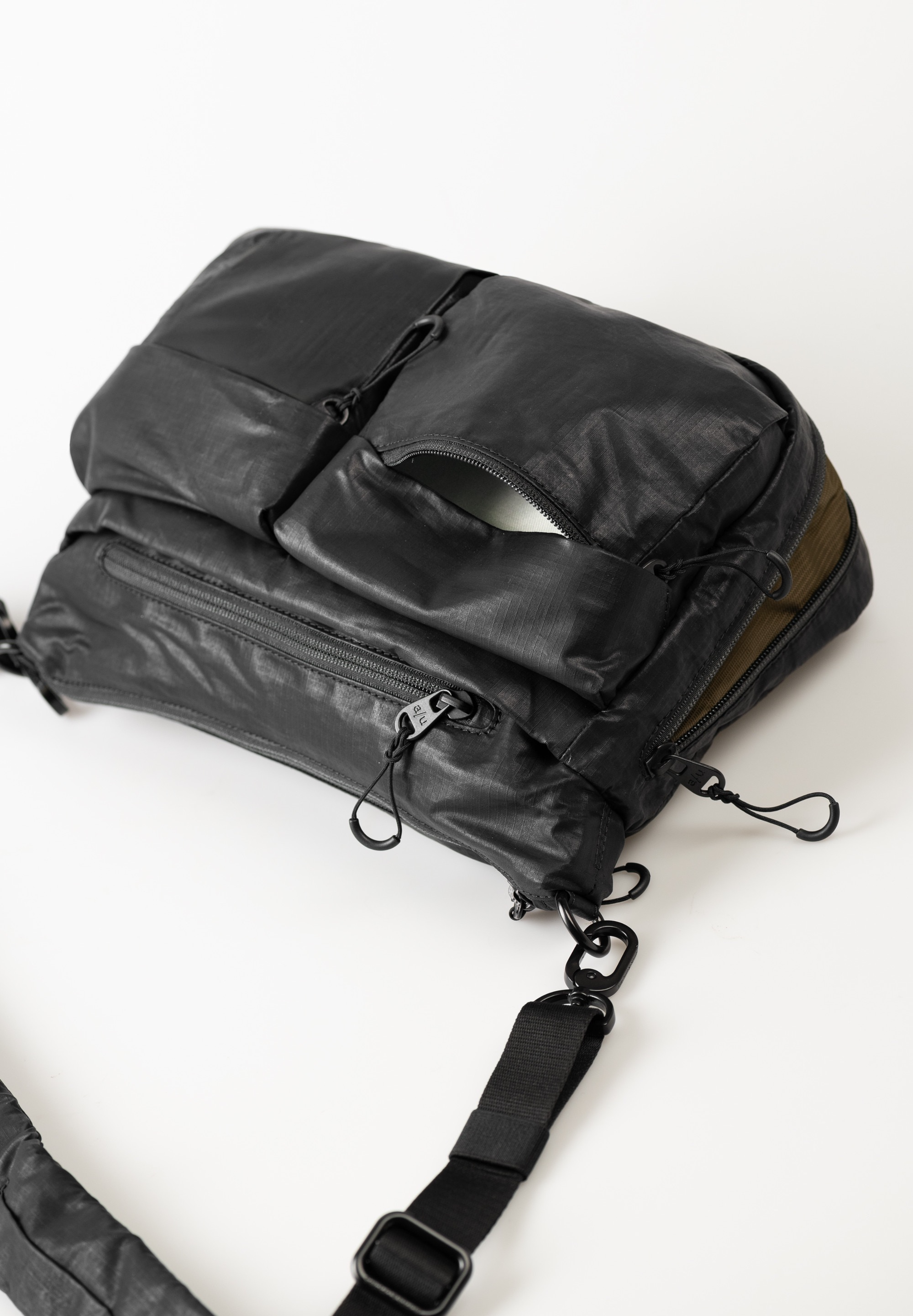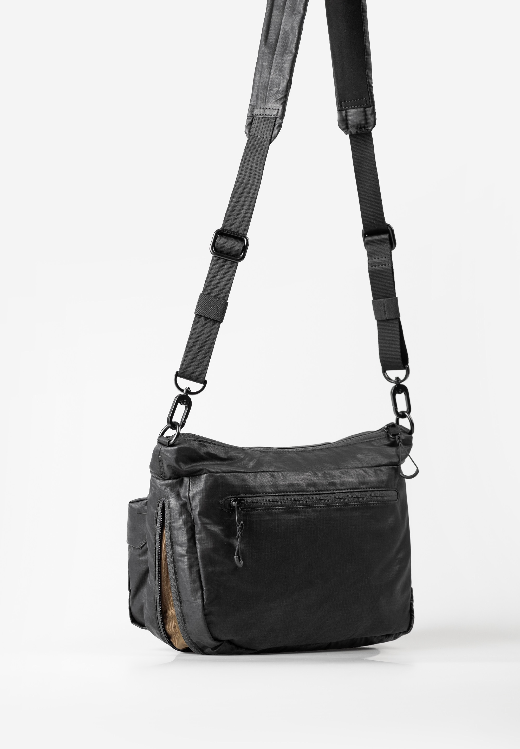 De MOGAMI RE LITE is het compacte zusje van de populaire Omono en overtuigt met een overzichtelijke indeling, sportieve stijl en een duurzame afwerking. Deze regenbestendige schoudertas is gemaakt van stevig, dicht geweven ripstop-materiaal van gerecycled nylon en katoen.
