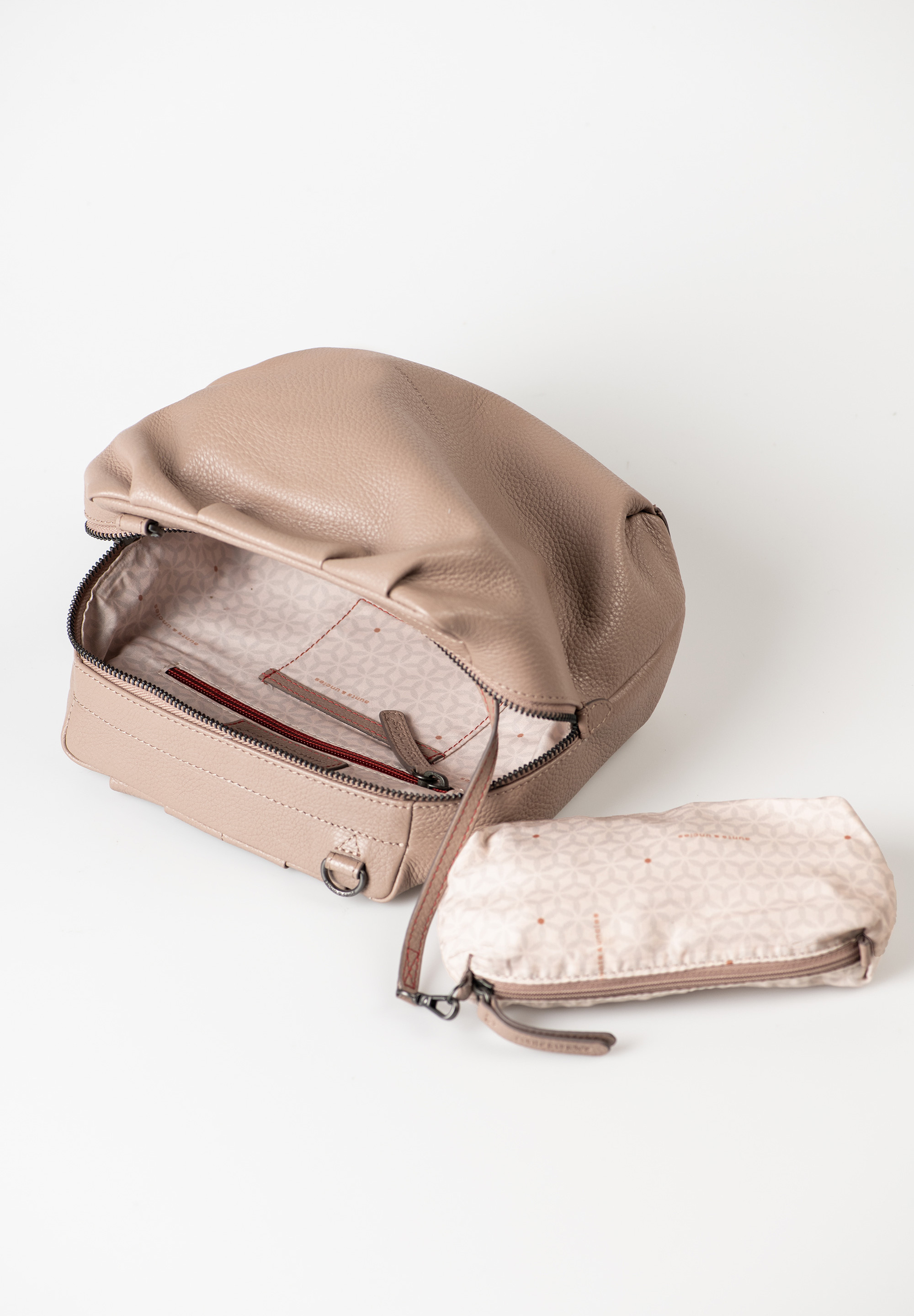 Binnenin zorgt een slimme indeling met diverse vakken, een sleutelriempje en een uitneembaar extra etuitje voor rust en overzicht. Of je nu je telefoon, sleutels of kleine essentials bij de hand wilt houden – met Honey heb je alles stijlvol georganiseerd. De verstelbare crossbodyband met schouderpad biedt bovendien maximaal draagcomfort, de hele dag door.