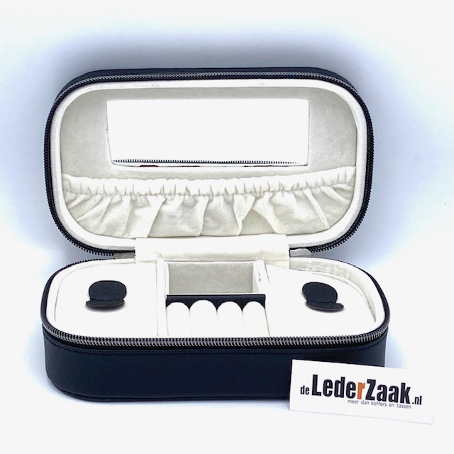 Reisetui geschikt voor ringen en kettingen etc. Onder de klep bevindt zich een spiegeltje.