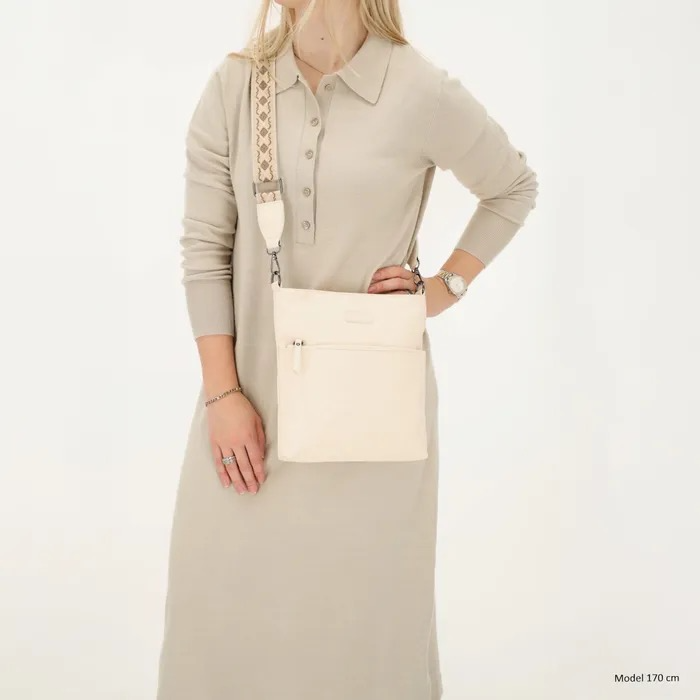 De tas heeft een moderne, minimalistische look en valt op door de leuke schouderband die zorgt voor een speelse twist. Dankzij het ruime hoofdvak, een voorvak én achtervak met ritssluiting berg je jouw spullen veilig én overzichtelijk op. De verstelbare en afneembare schouderband maakt het dragen extra comfortabel – crossbody of over één schouder, jij kiest!