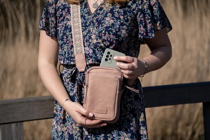 Dankzij de zachte kleur en de trendy, afneembare schouderband is dit tasje een echte eyecatcher. En met het hoofdvak, telefoonvak én achtervakje heb je verrassend veel opbergruimte. Handig én stijlvol – wat wil je nog meer?
