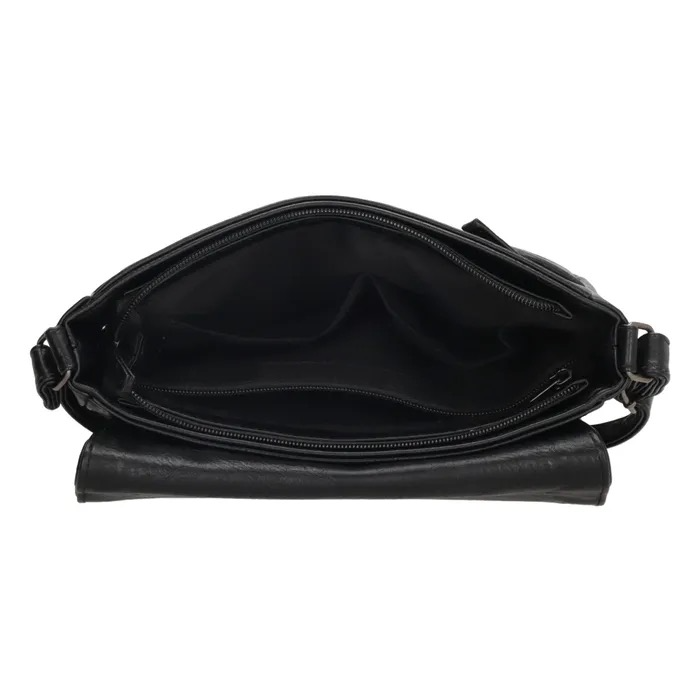 De tas sluit met een elegante overslag, wat zorgt voor extra gebruiksgemak en een moderne uitstraling. De verstelbare schouderband (niet afneembaar) biedt optimaal draagcomfort en maakt het mogelijk om de tas naar wens te dragen.