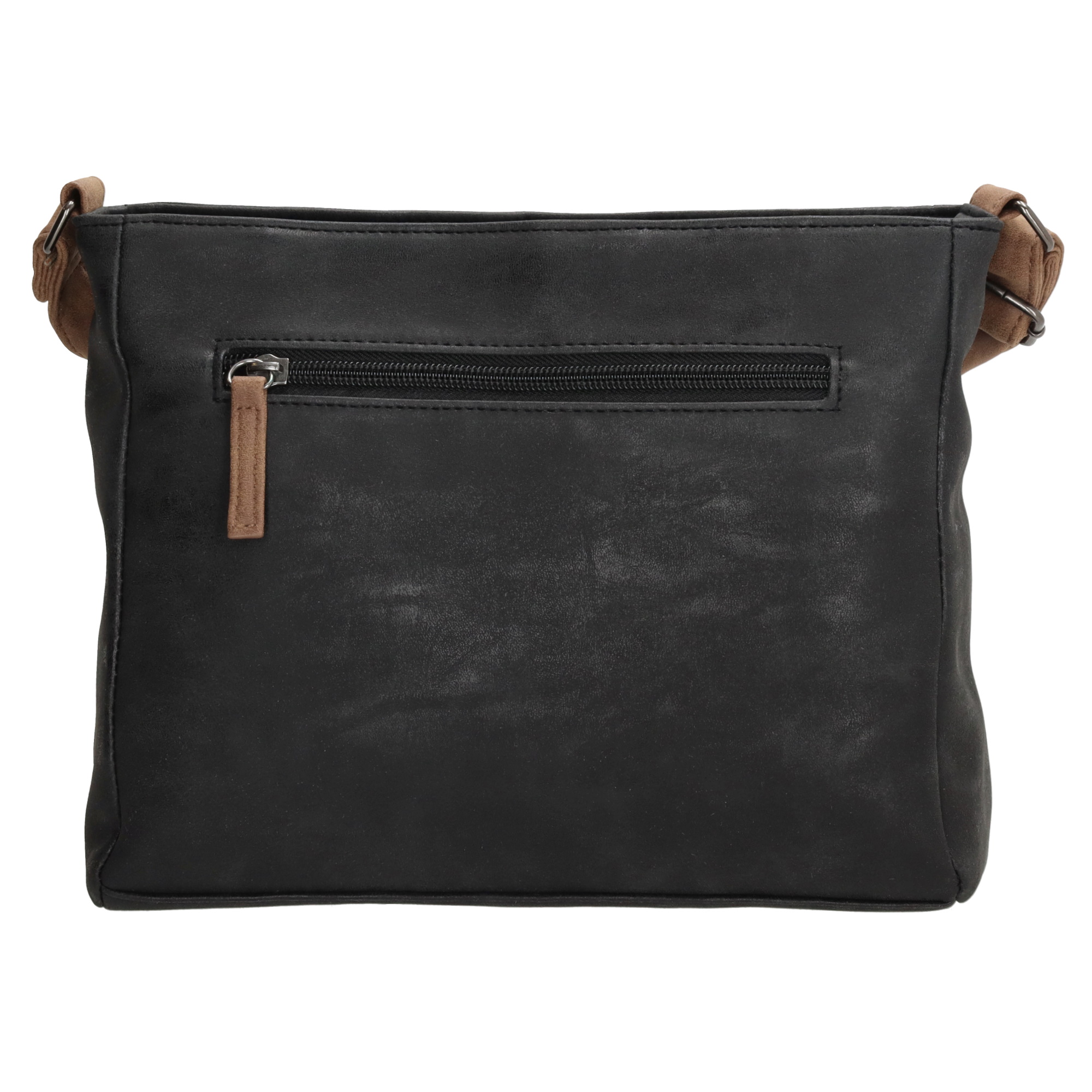 De tas beschikt over een ruim hoofdvak dat veilig afsluit met een ritssluiting. Daarnaast zijn er extra voorvakken, een achtervak met rits en handige insteekvakken binnenin – ideaal om je sleutels, telefoon en andere essentials overzichtelijk op te bergen.