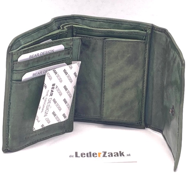 Alles onder 1 klep. Muntgeldvak. 11 vakjes voor bankkaarten. Waarvan 1 doorzichtig.