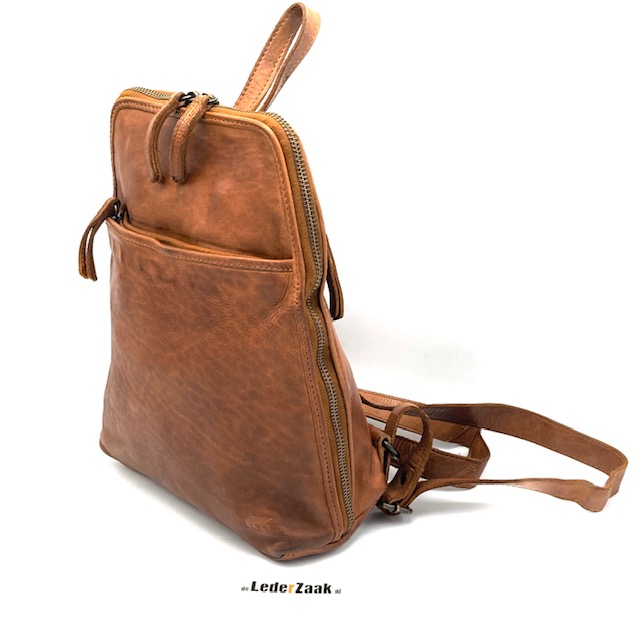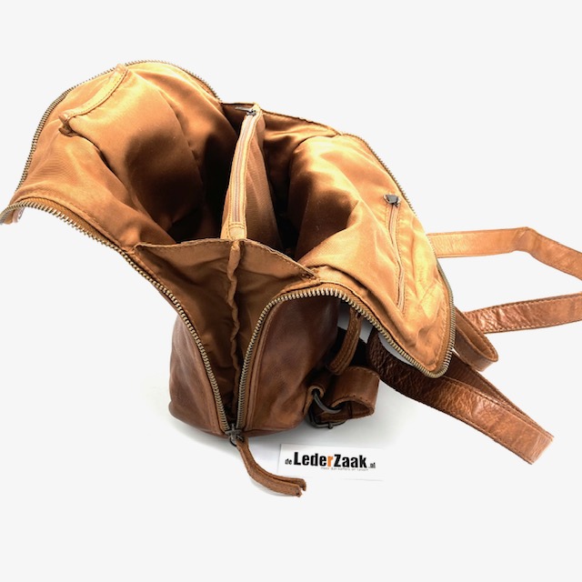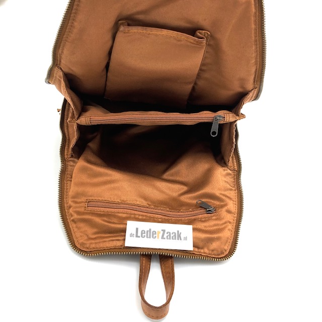Rugtas voorzien van toprits met dubbele trekker. Eenvoudig toegang door twee gescheiden vakken waarvan de middelste afsluitbaar is met rits.