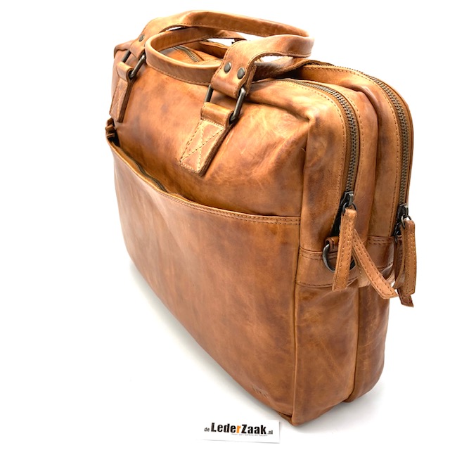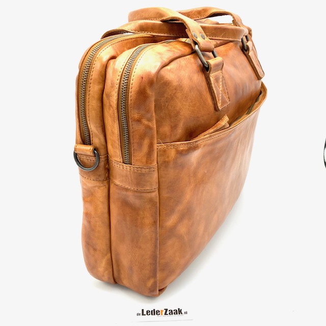 Deze stoere werktas mag gezien worden. Leuk te dragen bij een pak maar ook bij jeans. 2 handgrepen, lange draagriem, achterzijde 1 rits vak en 1 steekvak voorzien van drukker