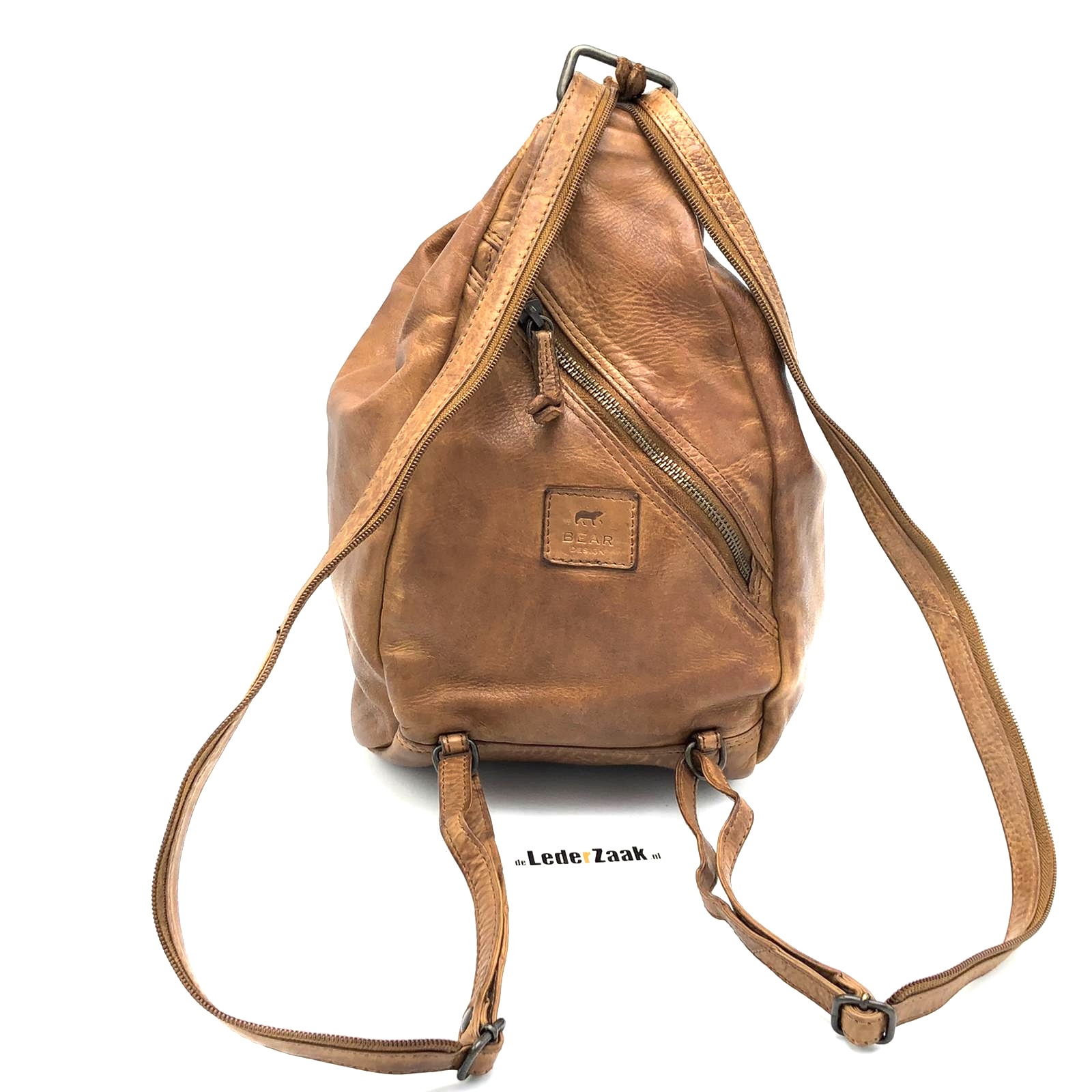 Klein rugtasje dat ook als schoudertas kan worden gedragen. Ritsvakje en telefoonvakje in de tas. Voor en achterzijde voorzien van rits.
