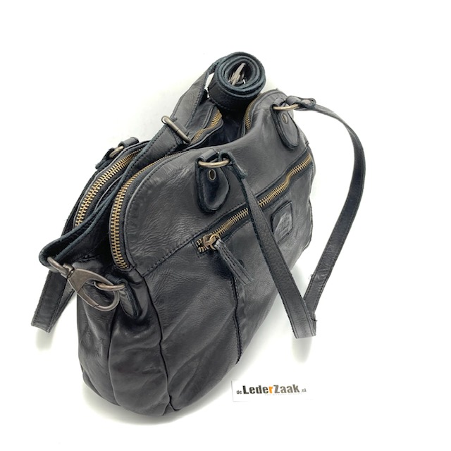 Heerlijke schoudertas welke is gemaakt van 100% leder. Leer is zacht en soepel. Dubbele bovenrits en zowel voor als achter heeft deze tas een rits.