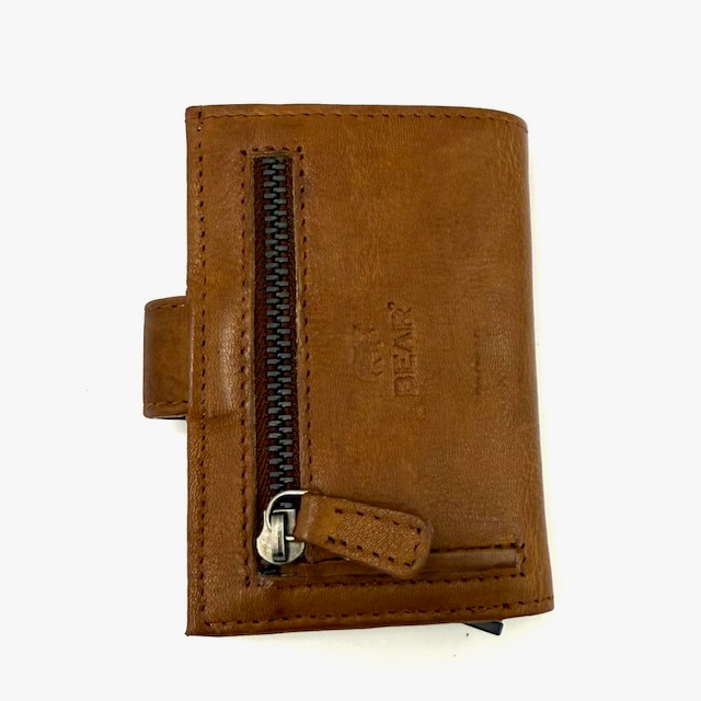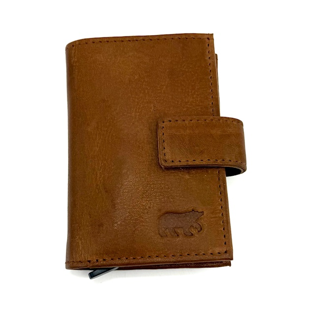 BearDesign Elsie creditcard etui cognac – stijlvolle leren pasjeshouder met hardcase en extra vakken