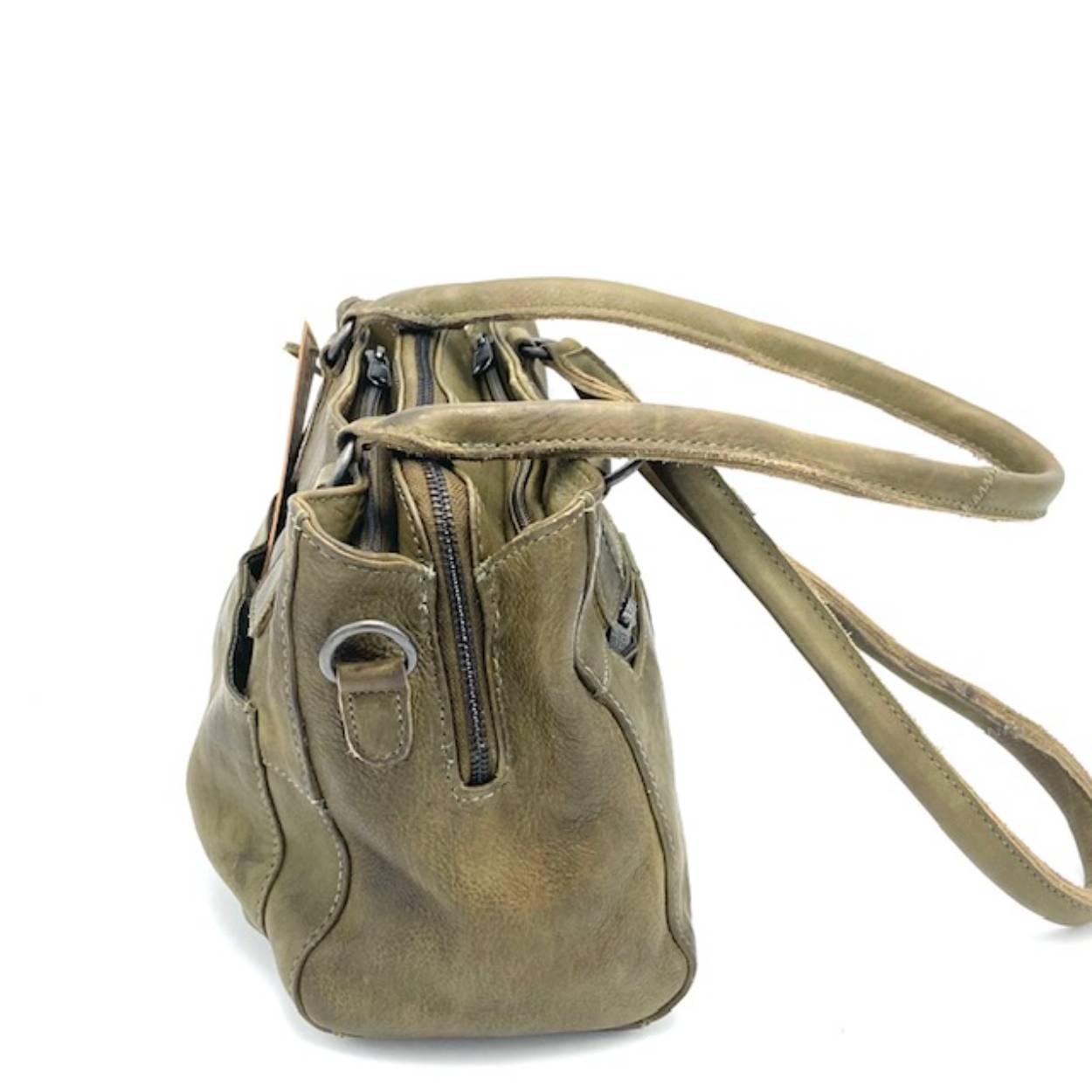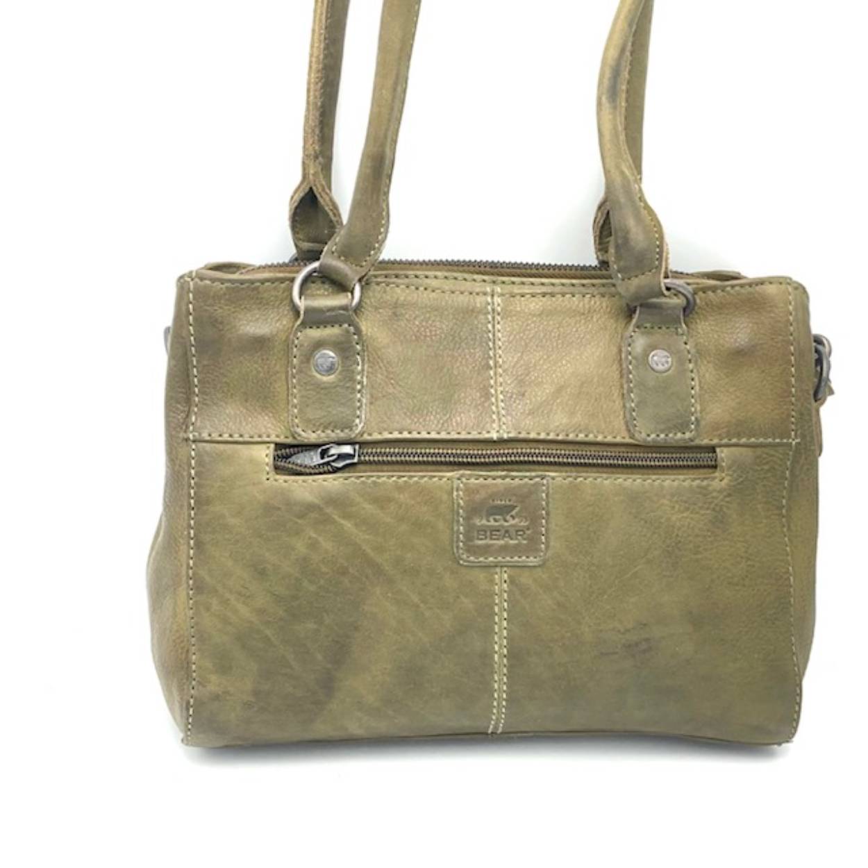 Shopper voorzien van drie topritsen, achterrits en steekvak aan de voorzijde voorzien van blinde magneetsluiting. Afneembare schouderriem.