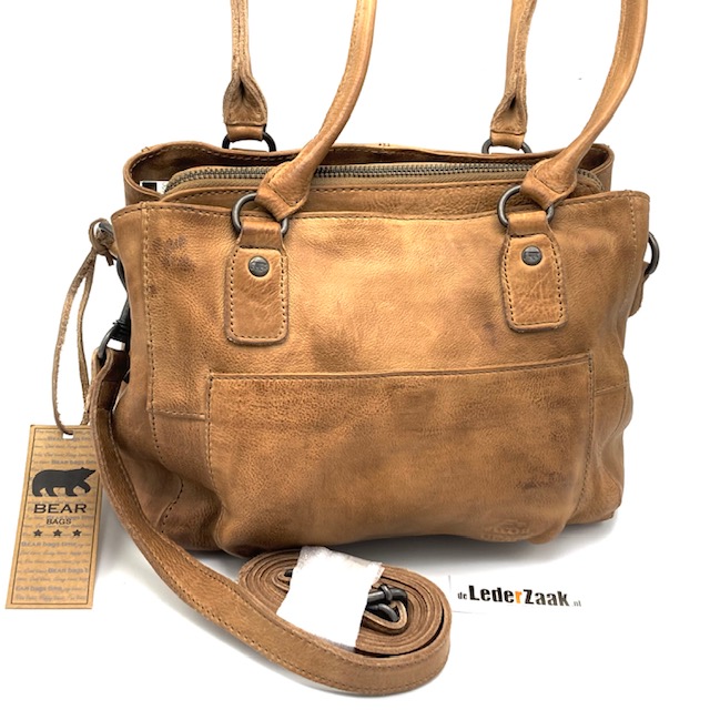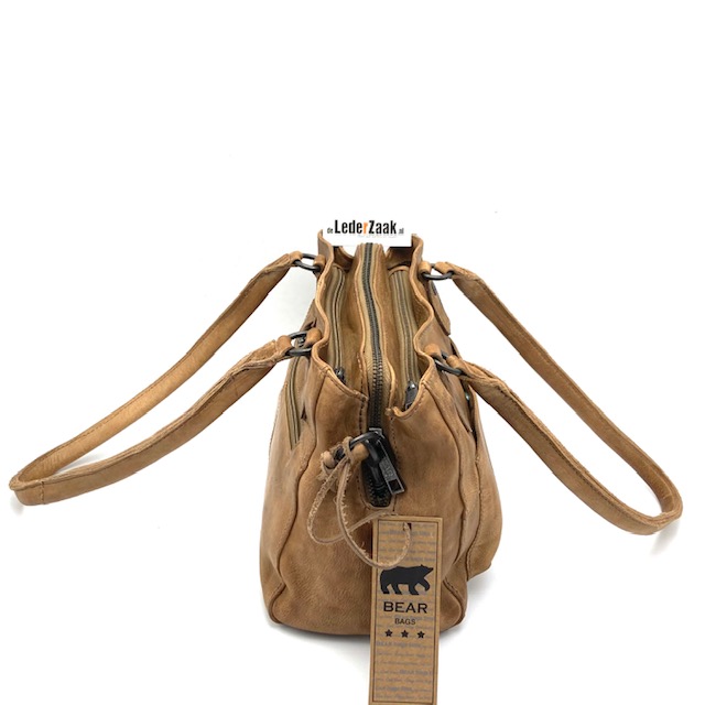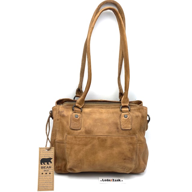 Shopper voorzien van drie topritsen, achterrits en steekvak aan de voorzijde voorzien van blinde magneetsluiting. Afneembare schouderriem.
