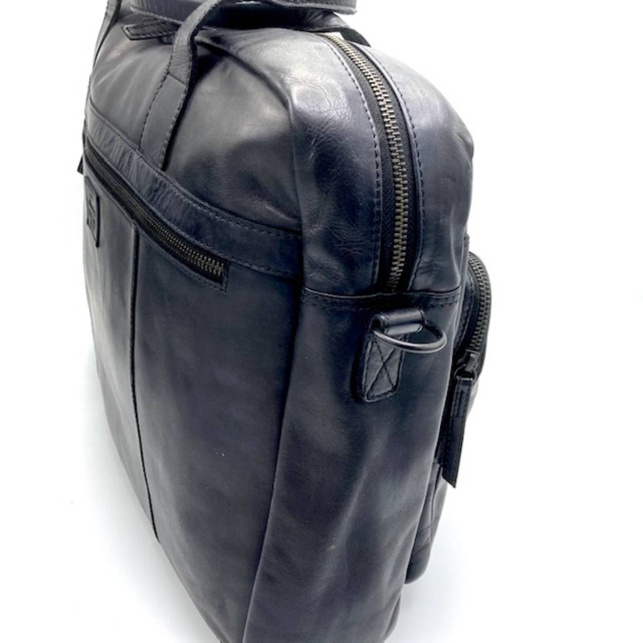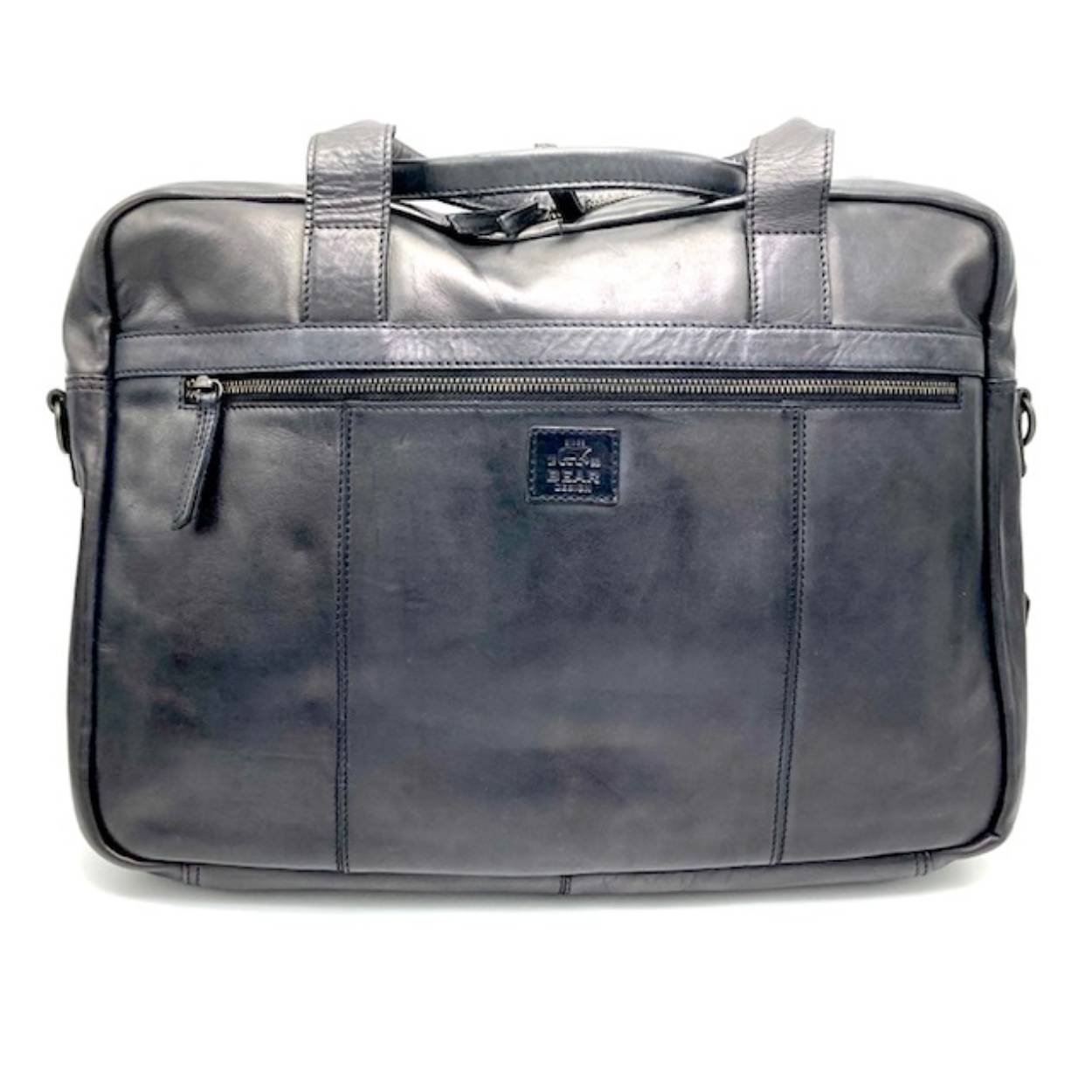 Mooie werktas in soepel stoer zwart leder. De tas is te dragen met twee handgrepen of een lange verstelbare schouderriem. Aan de voorzijde een extra vak voor pasjes, pennen, mobiel op te bergen.