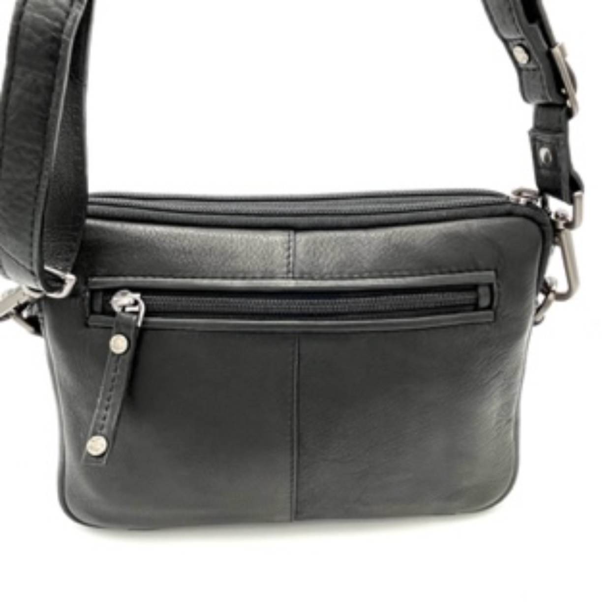 Deze Berba Crossbody-tas is gemaakt van zwart leer en heeft een verstelbare schouderband. De tas bevat meerdere vakken en een handig voorvak met rits. Het is ideaal voor dagelijks gebruik en past perfect bij elke outfit. Draag de tas over je schouder of crossbody voor een trendy look. Stijlvol en praktisch tegelijk!
