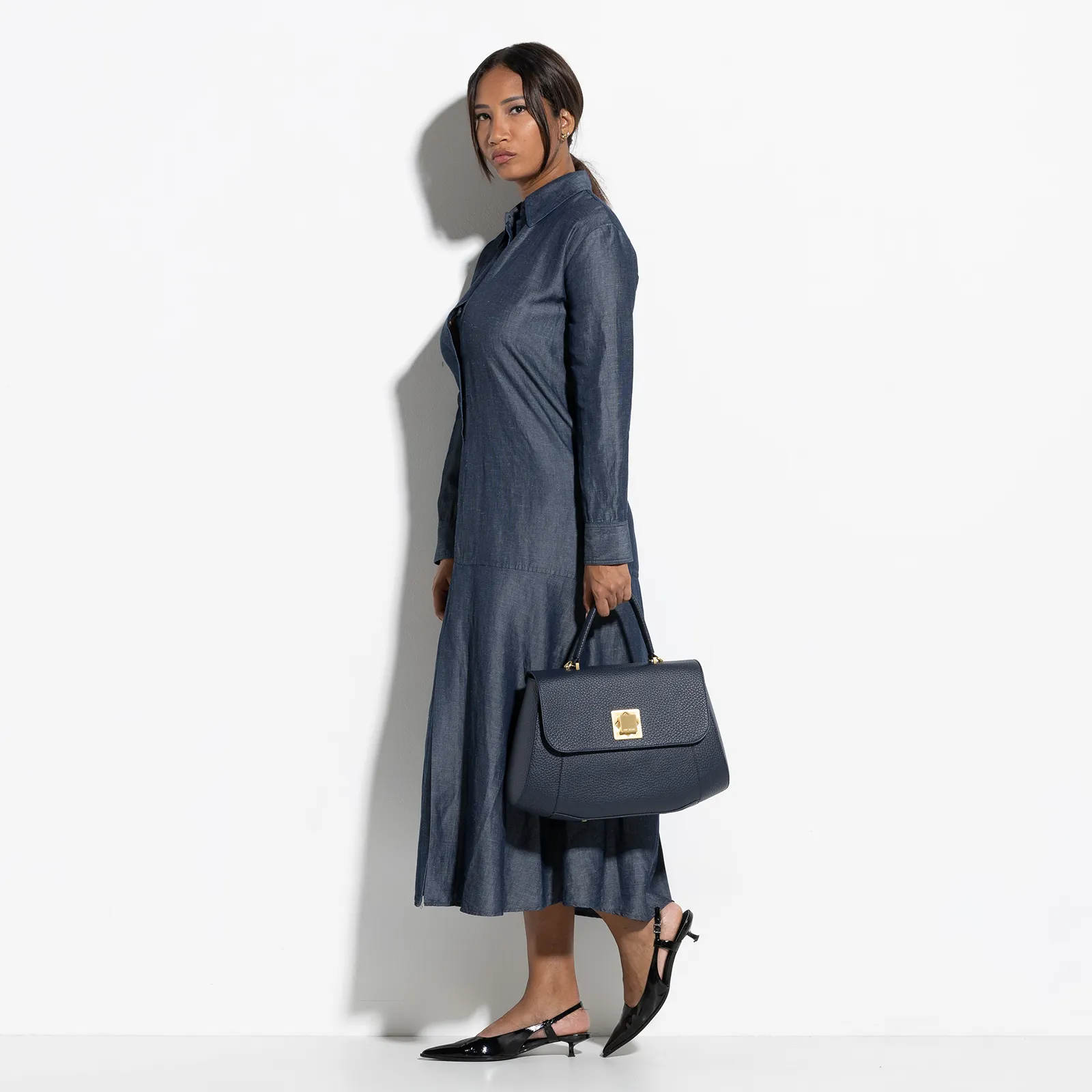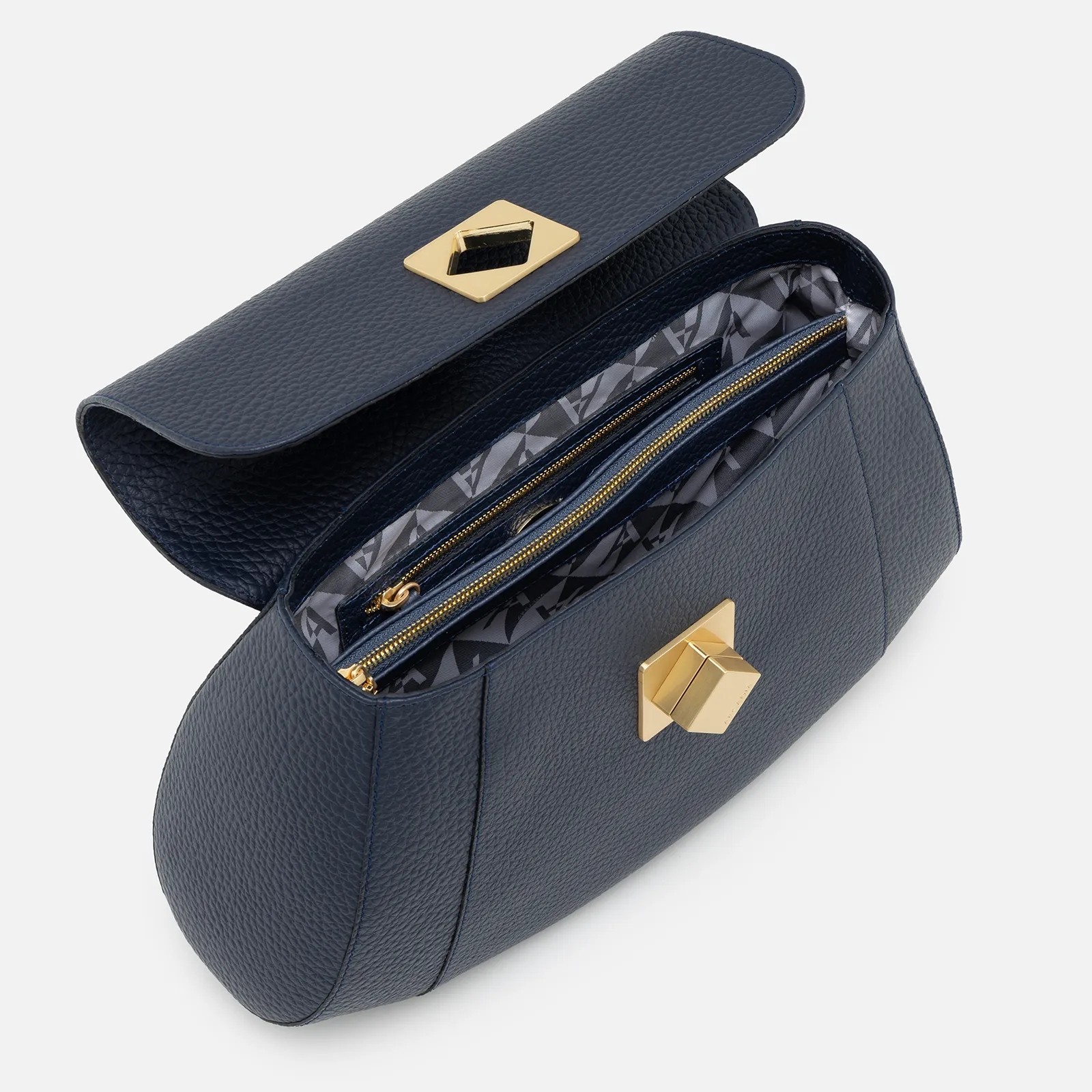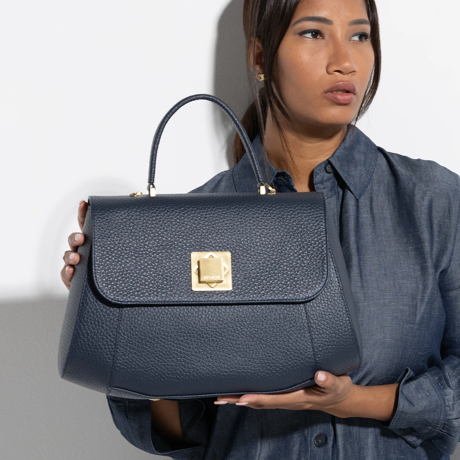 The Arcadia Bernadette is a satchel with geometric and sharp lines. It’s elegant and classy thanks to the macro front turn lock. It comes with a shoulder strap for an extra comfort.