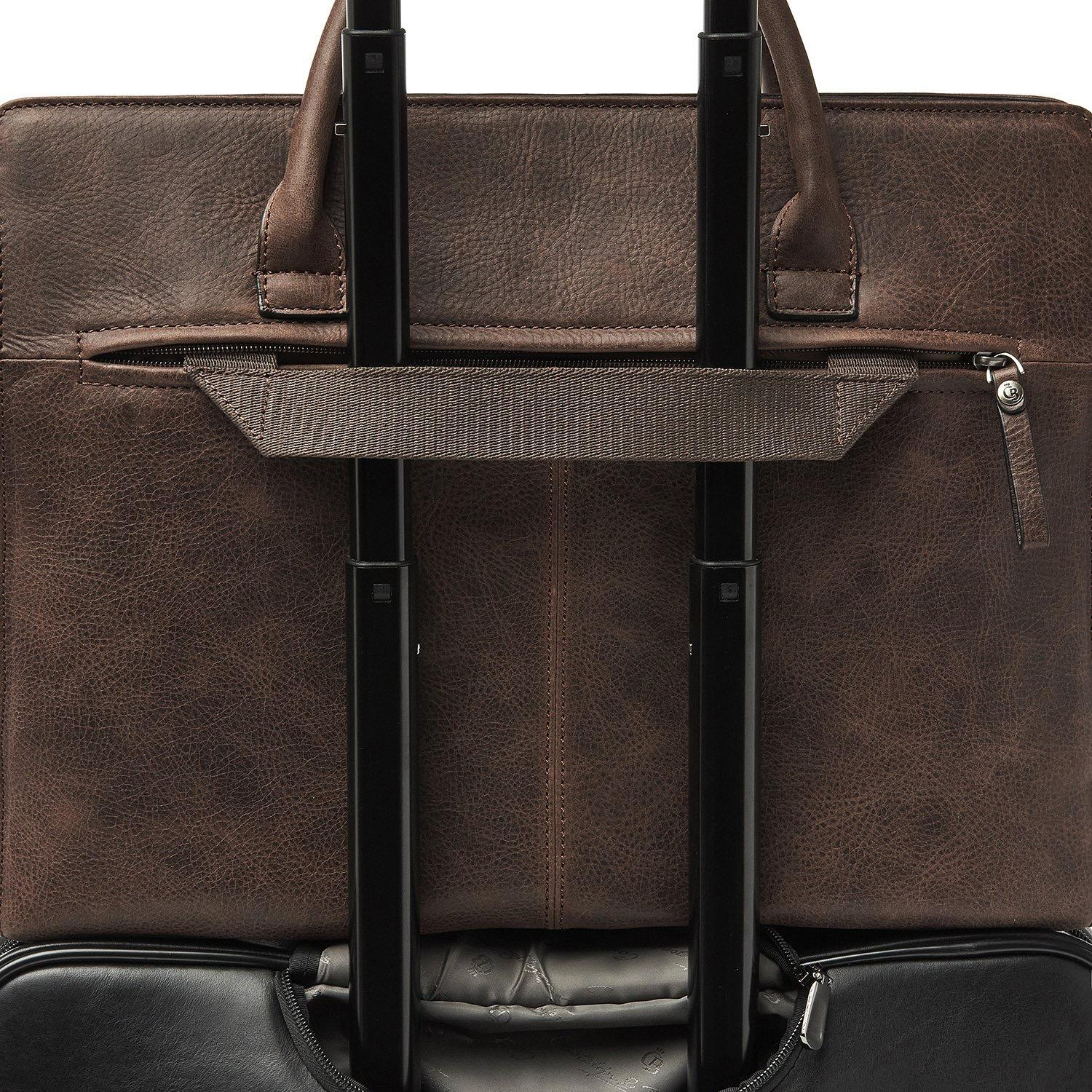Dankzij het geïntegreerde RFID-vakje zijn je bankpassen en paspoort beschermd tegen ongewenst uitlezen. Extra praktisch is de trolleyband aan de achterzijde, waarmee je de tas eenvoudig aan een koffer bevestigt tijdens zakenreizen.
