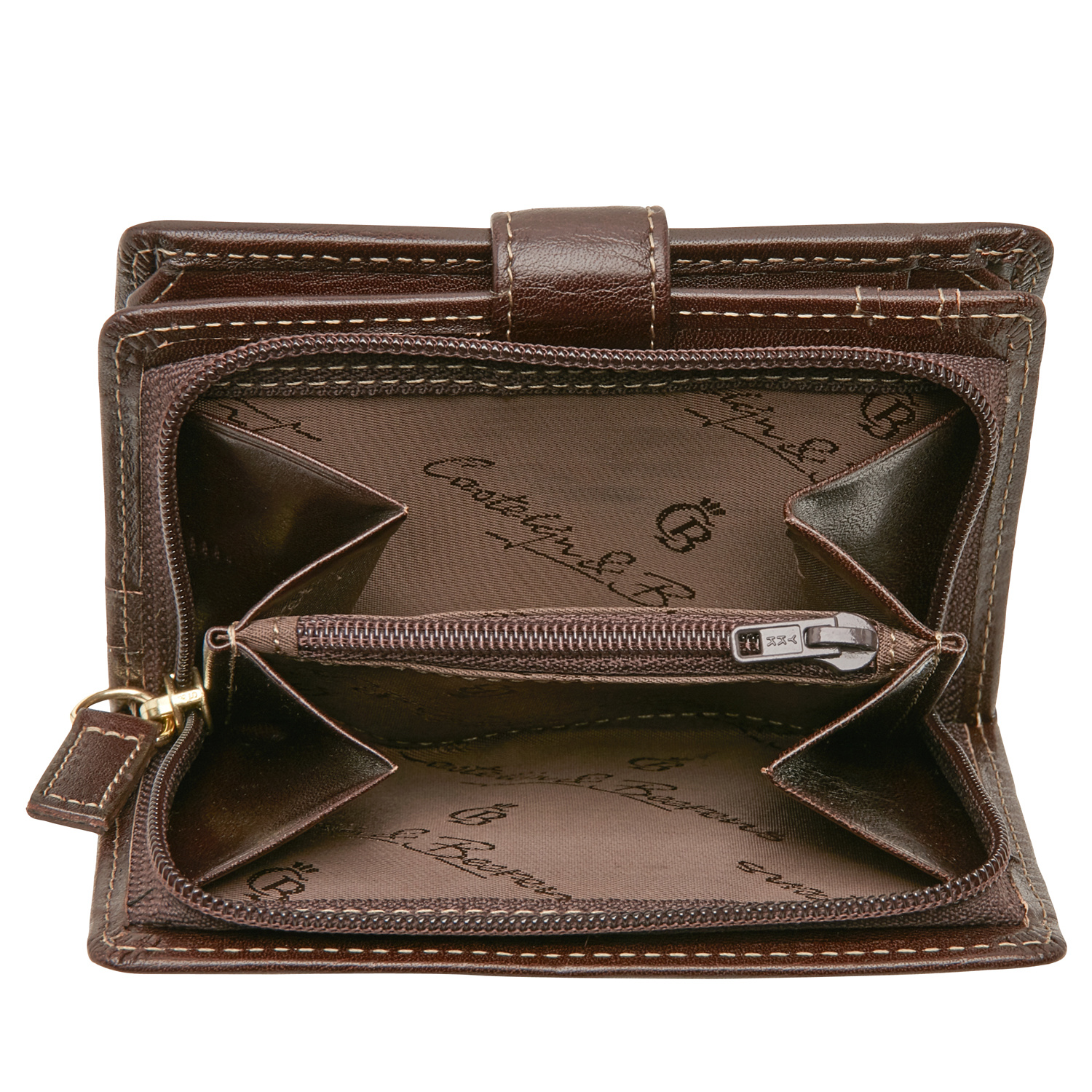 Praktische leren RFID damesportemonnee met een groot ritsvak. De portemonnee heeft veel ruimte voor papiergeld en is daarnaast voorzien van 9 creditcardvakjes en een apart vakje voor het rijbewijs. De Gaucho collectie is uitgerust met een high-tech folie, dat het uitlezen van de persoonlijke gegevens via de RFID-chip op uw pasjes verhindert. Deze luxe damesportemonnee uit de Gaucho-serie van Castelijn & Beerens is gemaakt van stierenleer behandeld met een transparante verfstof en afgewerkt met het sierlijke C&B-logo in een leren ovaaltje. De leren portemonnee is verkrijgbaar in de kleuren zwart, mocca en cognac.