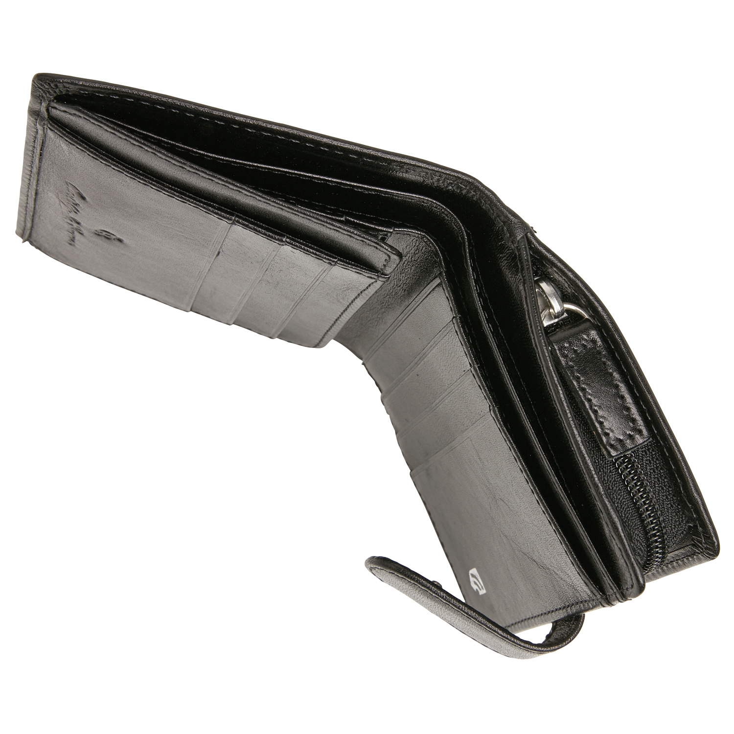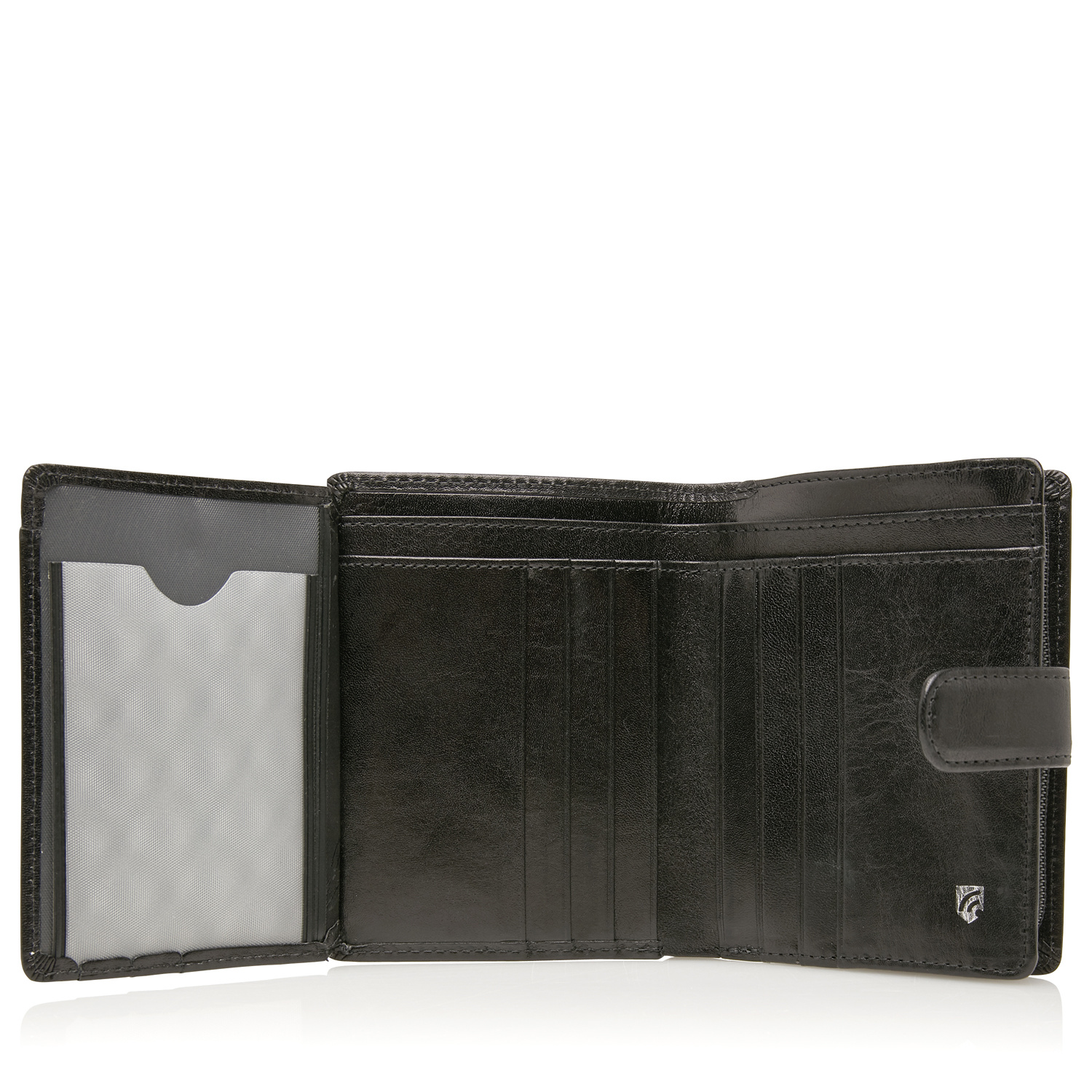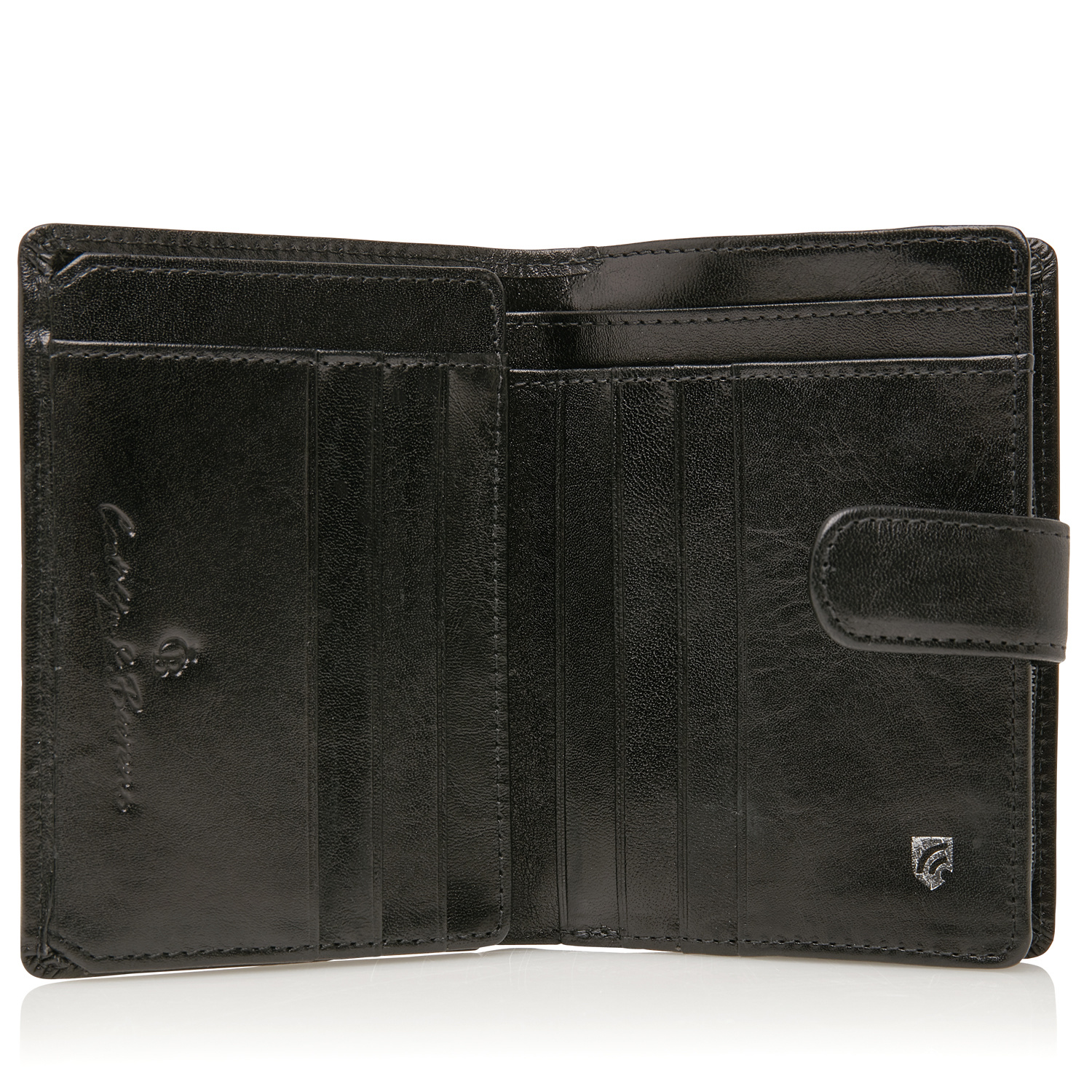 Praktische leren RFID damesportemonnee met een groot ritsvak. De portemonnee heeft veel ruimte voor papiergeld en is daarnaast voorzien van 9 creditcardvakjes en een apart vakje voor het rijbewijs. De Gaucho collectie is uitgerust met een high-tech folie, dat het uitlezen van de persoonlijke gegevens via de RFID-chip op uw pasjes verhindert. Deze luxe damesportemonnee uit de Gaucho-serie van Castelijn & Beerens is gemaakt van stierenleer behandeld met een transparante verfstof en afgewerkt met het sierlijke C&B-logo in een leren ovaaltje. De leren portemonnee is verkrijgbaar in de kleuren zwart, mocca en cognac.