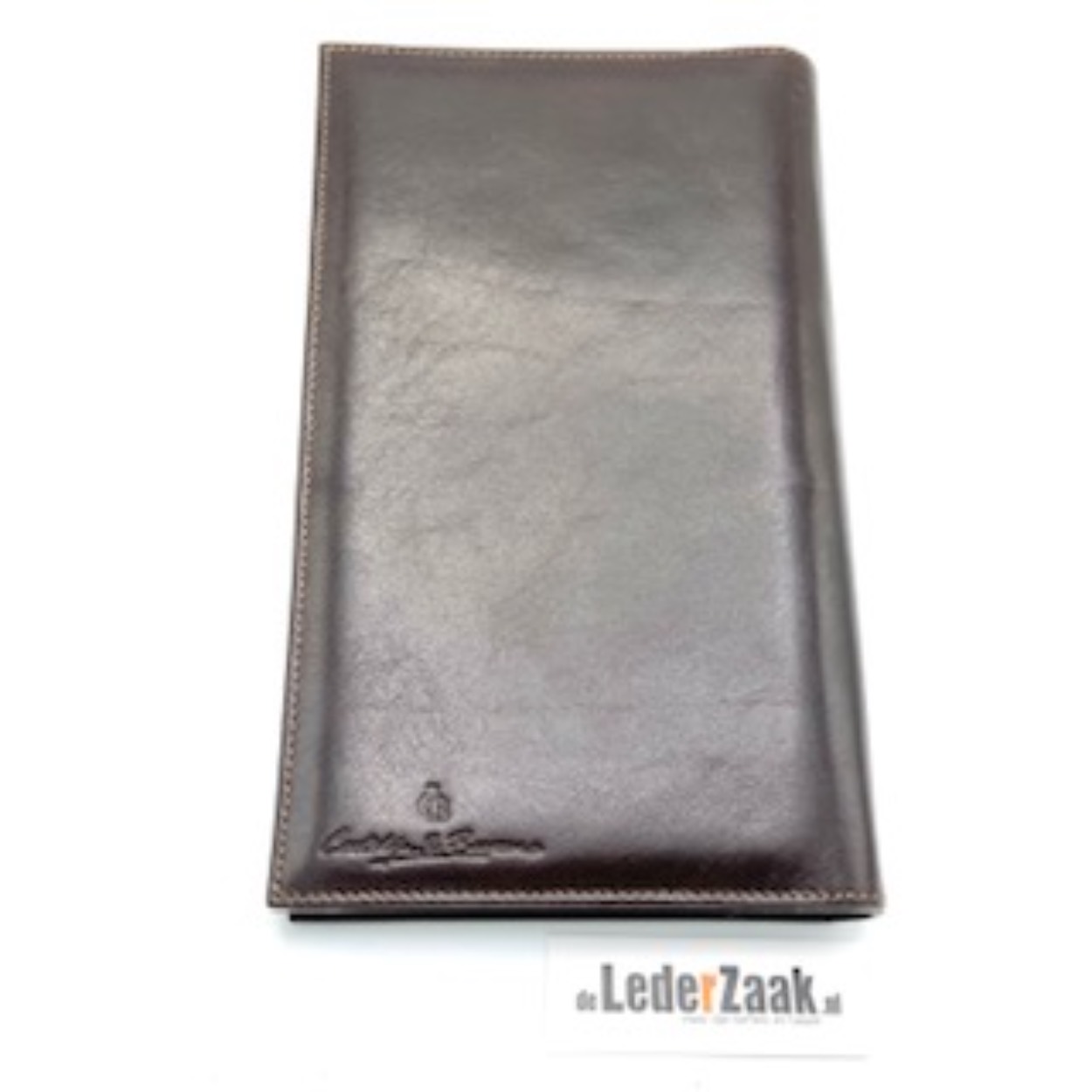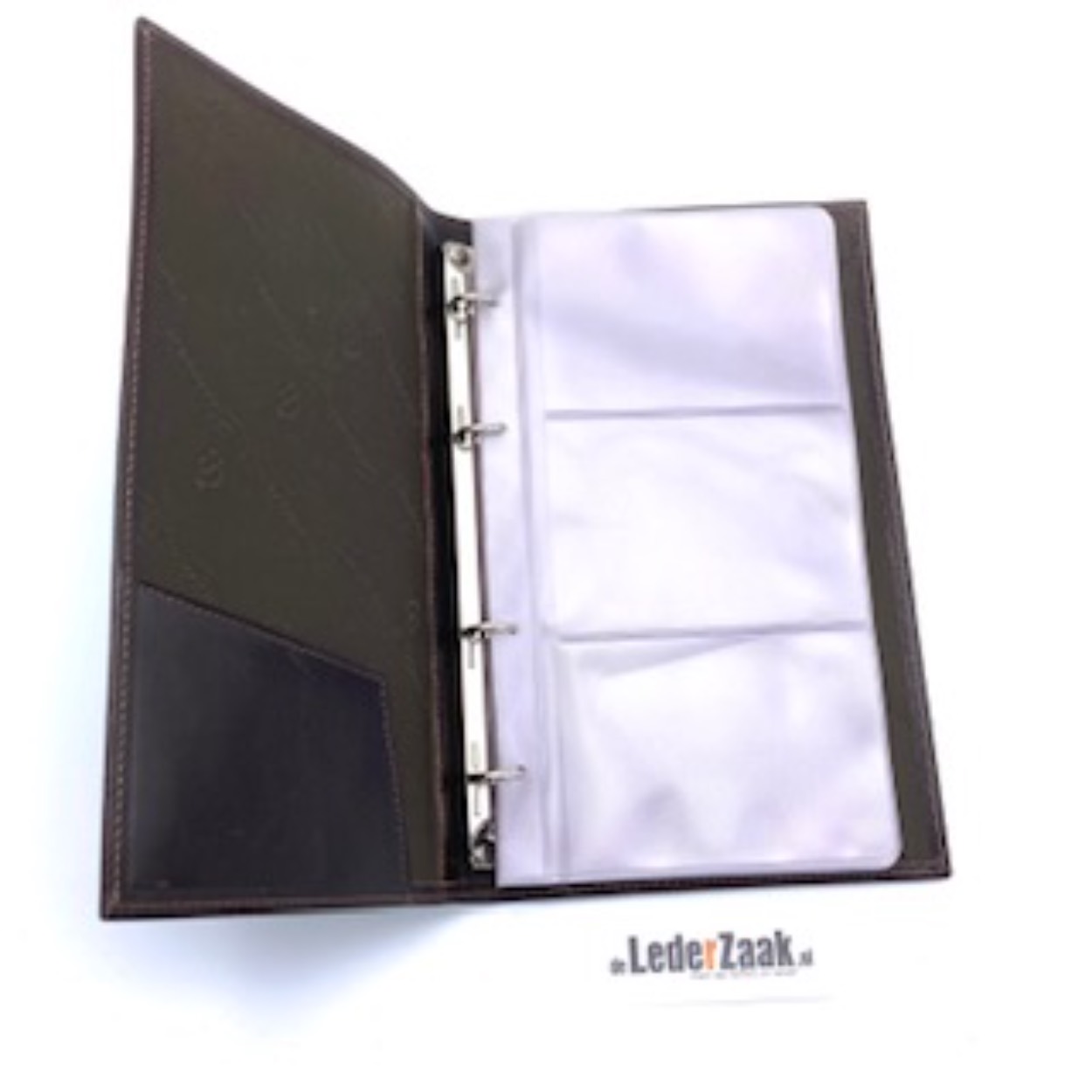 Prachtige donkerbruine lederen map voor het bewaren en opbergen van visitekaartjes.