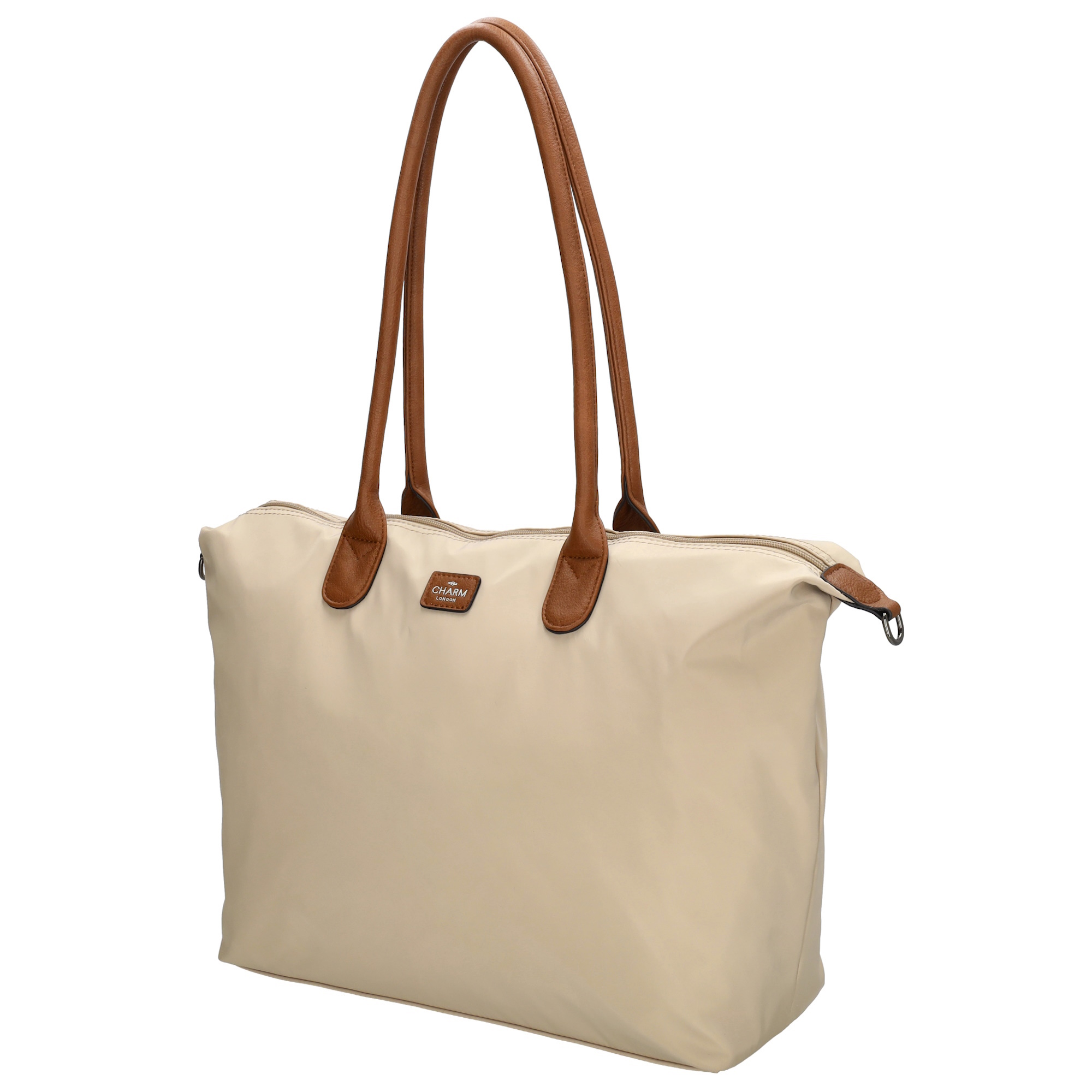 Deze shopper van Charm London is de perfecte tas voor school of werk. De tas biedt een ruim hoofdvak met een telefoonvak, ritsvak en speciaal laptopvak, geschikt voor laptops tot 15.6 inch. Aan de achterkant bevindt zich een extra ritsvak voor snelle toegang. Dankzij de verstelbare en afneembare schouderband kun je de tas eenvoudig crossbody dragen op jouw gewenste hoogte.