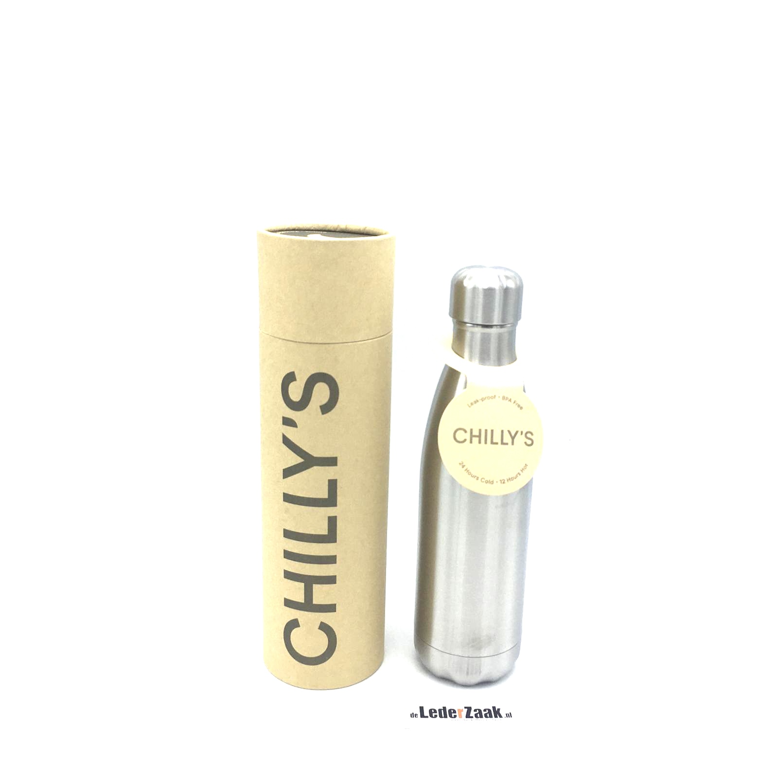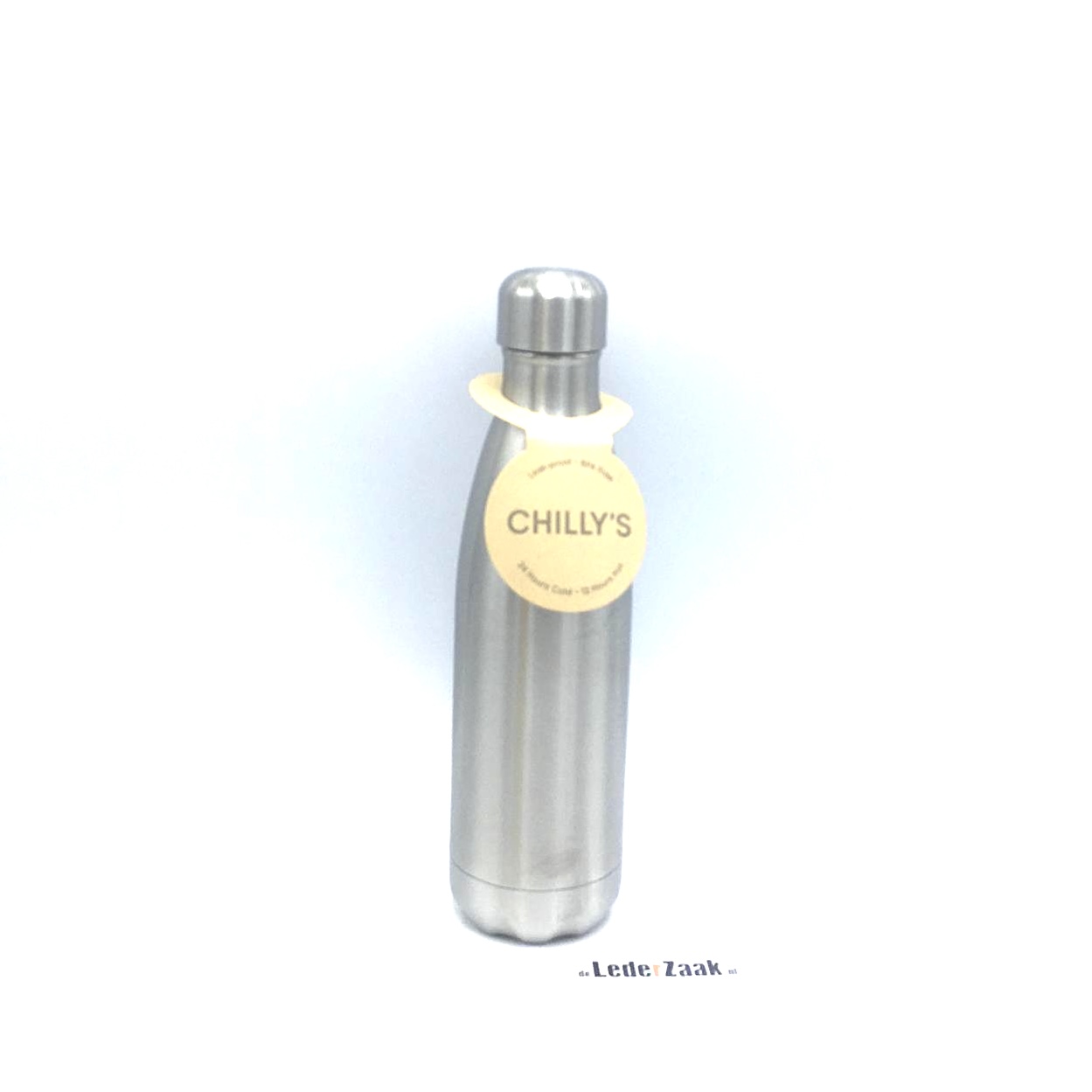 Deze Chilly's Bottle heeft een inhoud van 500 ML	en een gewicht van 360 gram.26,5 hoog en 7 cm omvang	De dop is gemaakt van rvs en heeft siliconen ring. Kortom uw drankje blijft door de hoogwaardige dubbele wand maar liefst 24 uur koud of 12 uur warm.