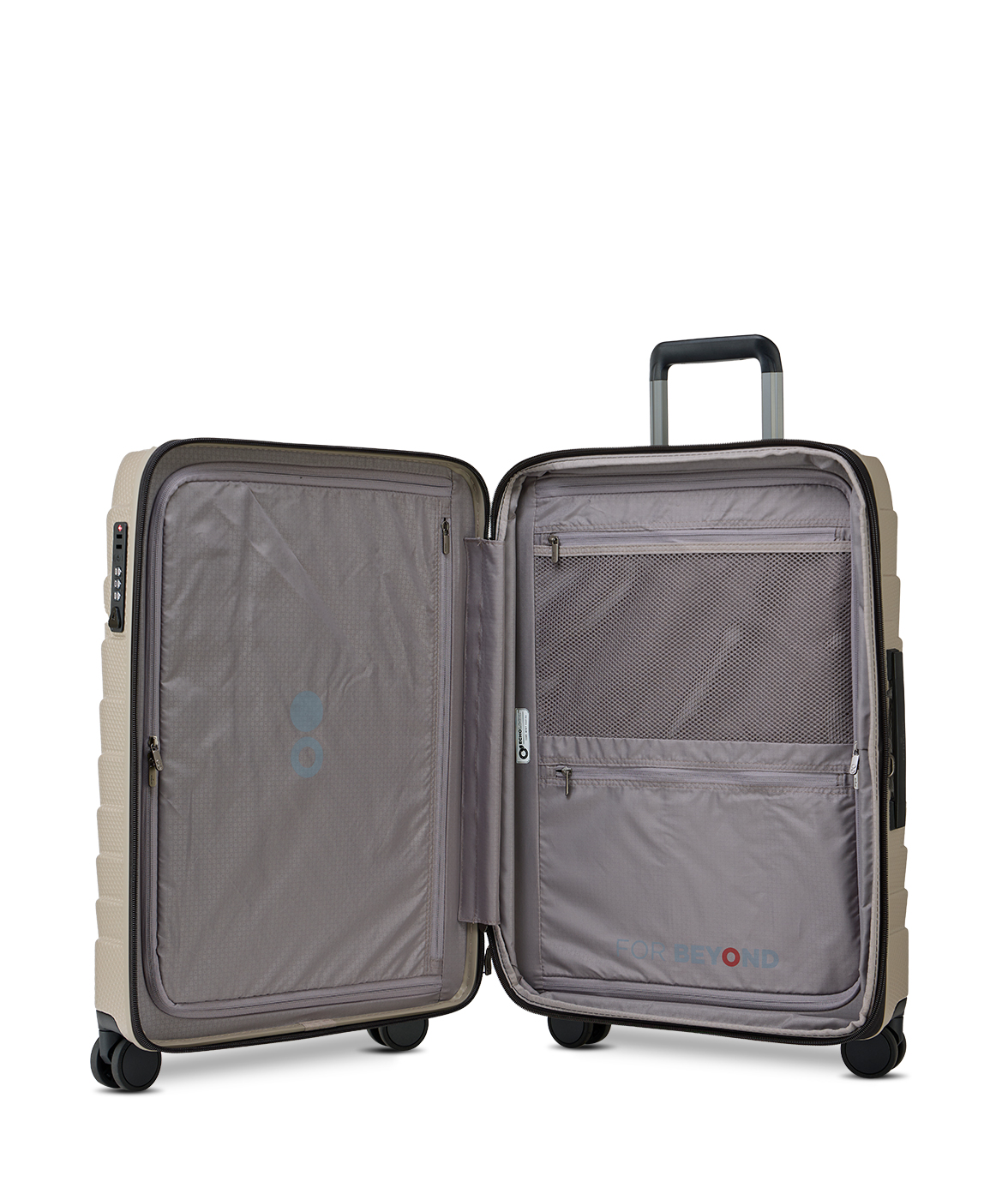 Reis verder met vertrouwen met de For Beyond koffer. Deze koffer is ontworpen voor reizigers die comfort, duurzaamheid en stijl willen combineren in één compacte oplossing.