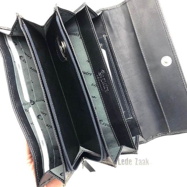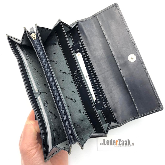 Donker blauwe dames portemonnee uit de collectie Dallas van Esquire. Het matte, licht gewaxte leer heeft een eigen karakter.