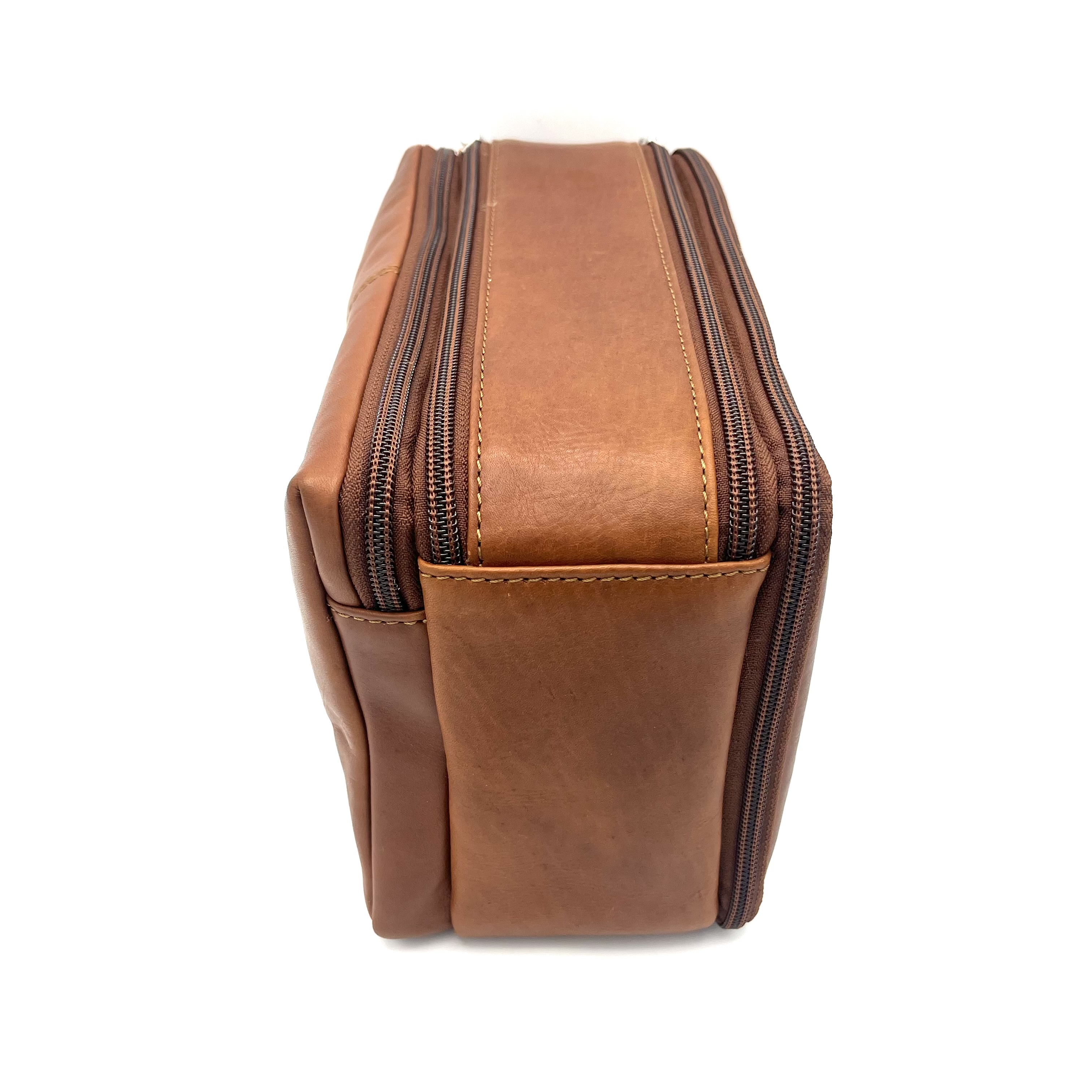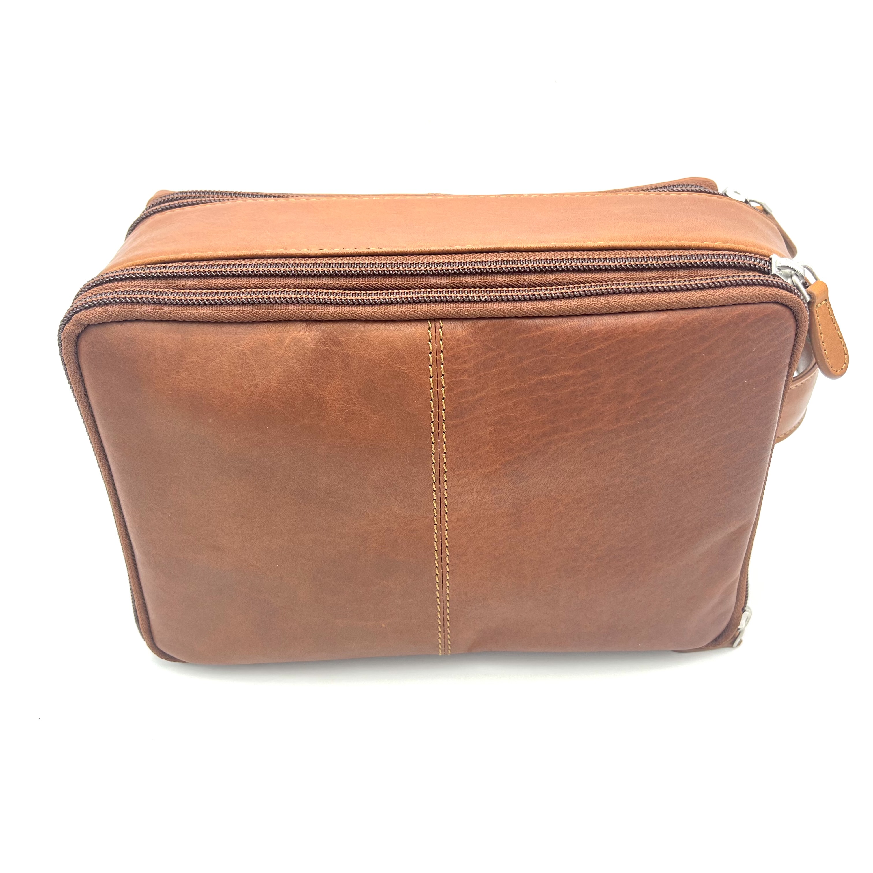 De Esquire Dallas toilettas in Cognac is gemaakt van hoogwaardig leer met een stijlvol gestructureerd ontwerp. Voorzien van meerdere vakken en een handige ritssluiting. Draag deze toilettas mee tijdens reizen of naar de sportschool voor al je essentiële toiletartikelen. Het tijdloze ontwerp en de duurzame materialen zorgen voor jarenlang gebruiksgemak en stijlvolle uitstraling. Kom goed voor de dag met deze luxe toilettas!