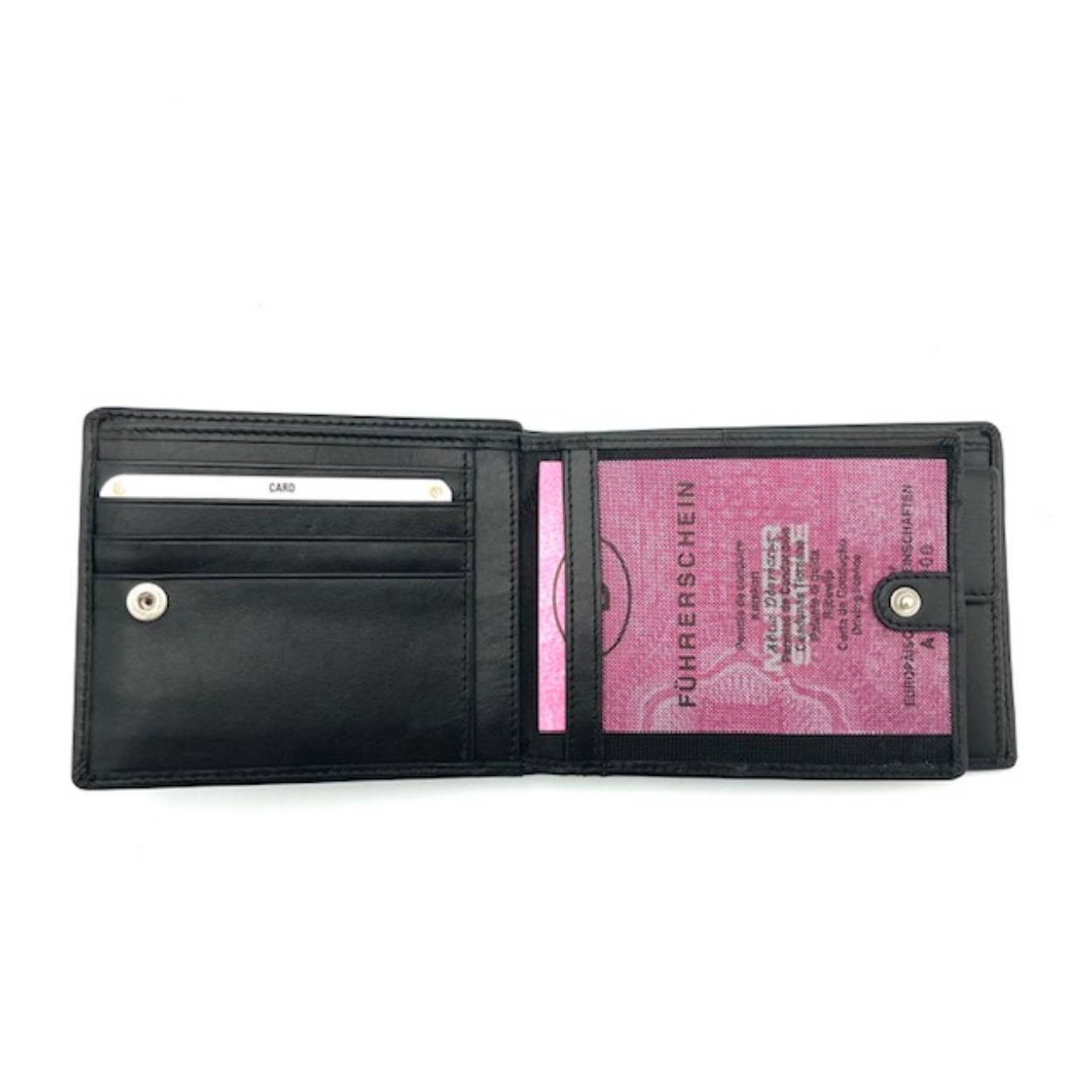 Billfold van een mooi rundleder met chique logo. Ruimte voor 12 kaarten en een geheimvak voor grote biljetten.