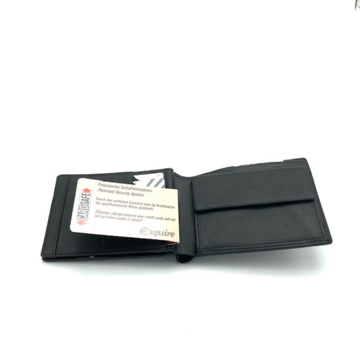 Mooie soepel lederen billfold uit de serie Logo van Esquire. Ruimte voor 12 cc. Het speciale cardsafe systeem zorgt ervoor dat uw passen nagenoeg niet verloren kunnen worden. De RFID blocking voorkomt het skimmen van uw gegevens.