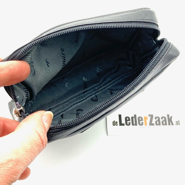 Deze heeft 1 vak en is af te sluiten met een rits. De lus heeft een afmeting van 5 cm (houd rekening met de dikte van de riem!)