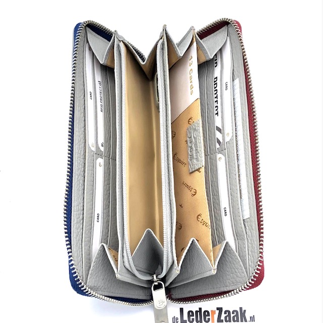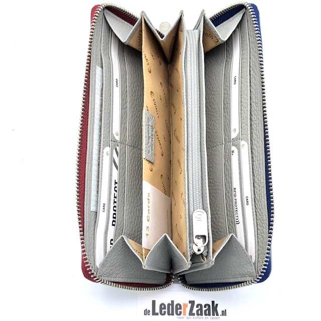 Met 3 bankbiljet vakken, ruimte voor 13 pasjes én een muntvak (met winkelwagenmunt) welke is af te sluiten met een rits.