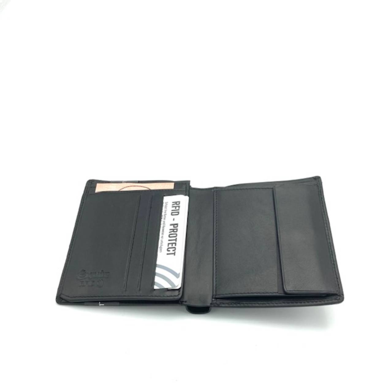 Enorm plat gemaakt. Ruimte voor 11 pasjes, dubbel papiergeld vak.