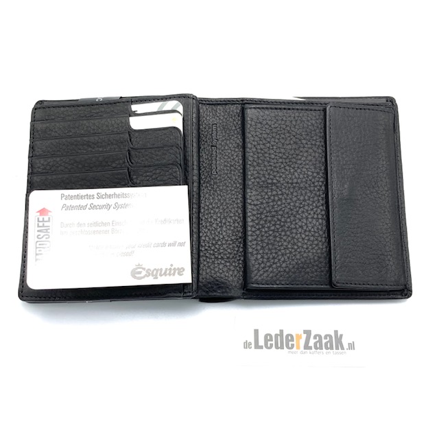 Deze zwarte heren portemonnee uit de Texas collectie van Esquire bied ruimte aan minimaal 16 pasjes.