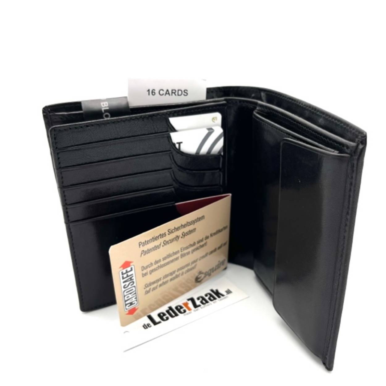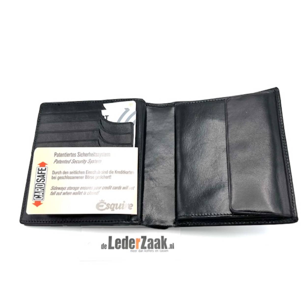Het ruime muntgeldvak zorgt voor extra gebruiksgemak, terwijl het gepatenteerde Cardsafe-systeem ervoor zorgt dat je kaarten altijd veilig zijn opgeborgen. Zelfs wanneer de portemonnee gesloten is, kunnen er geen belangrijke kaarten uitvallen of verloren gaan.
