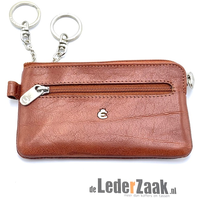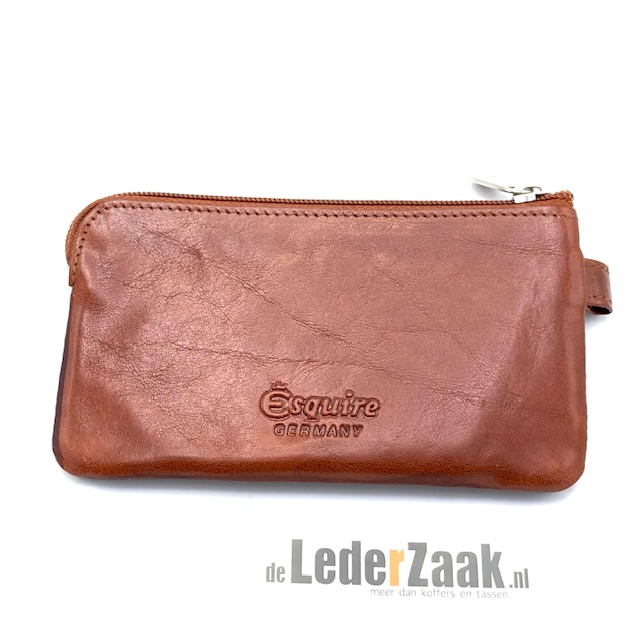 Deze sleuteletui uit de Toscana collectie van het merk Esquire in mooie cognac kleur heeft twee sleutellussen met ringen. De etui is af te sluiten met een rits.