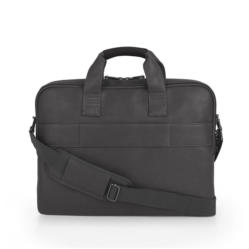 15,6'' laptoptas met 2 compartimenten. Synthetisch leer, vrij van PVC-kunststoffen. Gewatteerd interieur met laptop- en organizervak. Bagagebevestiging aan de achterkant.