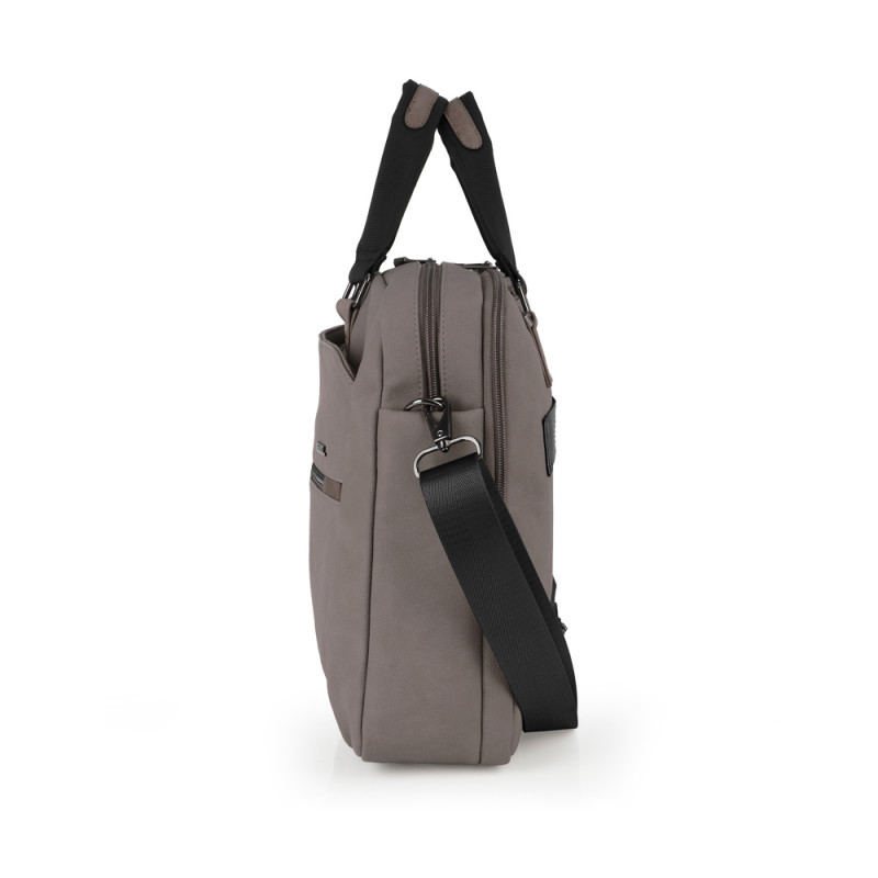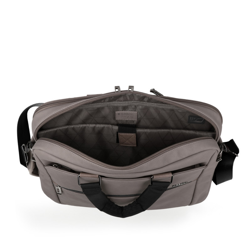 Laptoptas voor 15,6” laptop, vervaardigd uit hoogwaardig synthetisch leer in de kleur beige. Voorzien van een geïntegreerde documenthouder, organizer en twee ruime compartimenten. De tas beschikt over een handige trolleyband om eenvoudig aan een koffer te bevestigen.