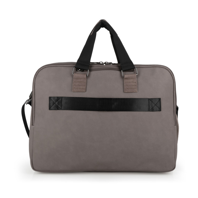 Laptoptas 15,6" van synthetisch leer – Beige – Met dubbel compartiment & trolleyband