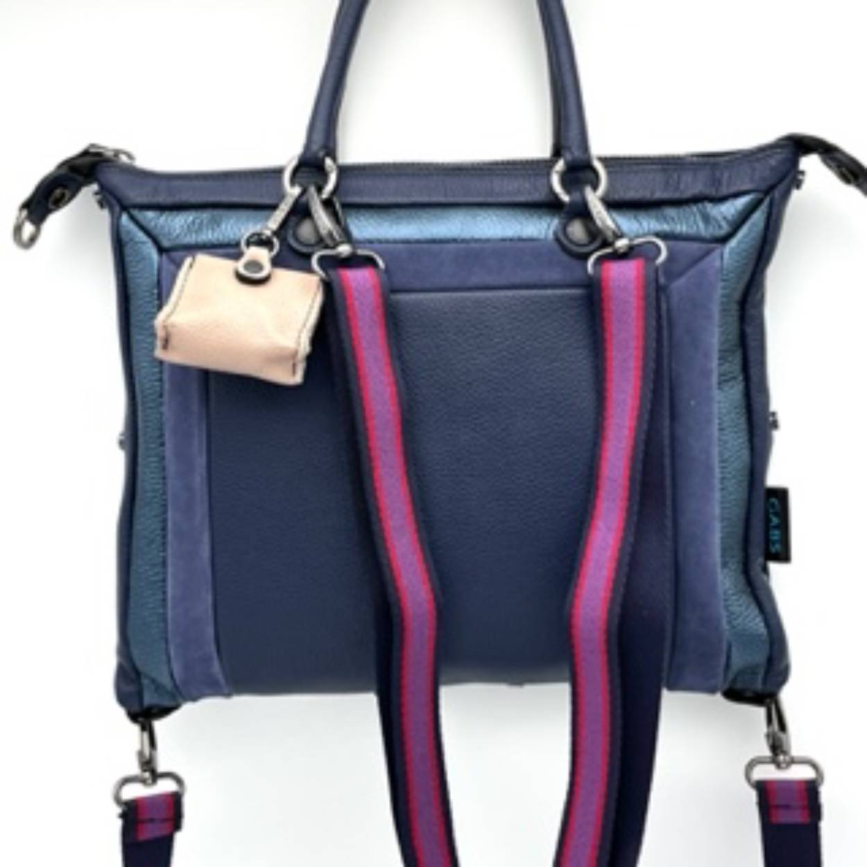 Deze leuke schoudertas kunt u ombouwen in een rugzak door middel van de twee banden vast te maken, een rechthoekige tas door middel van de knopen aan de zijkant en onderkant vast te maken en u kunt ervoor kiezen om de korte handvaten eraf te halen en die te vervangen met een lange band. Verder zit er in deze tas drie opbergvakken en een klein opbergtasje aan de buitenkant.