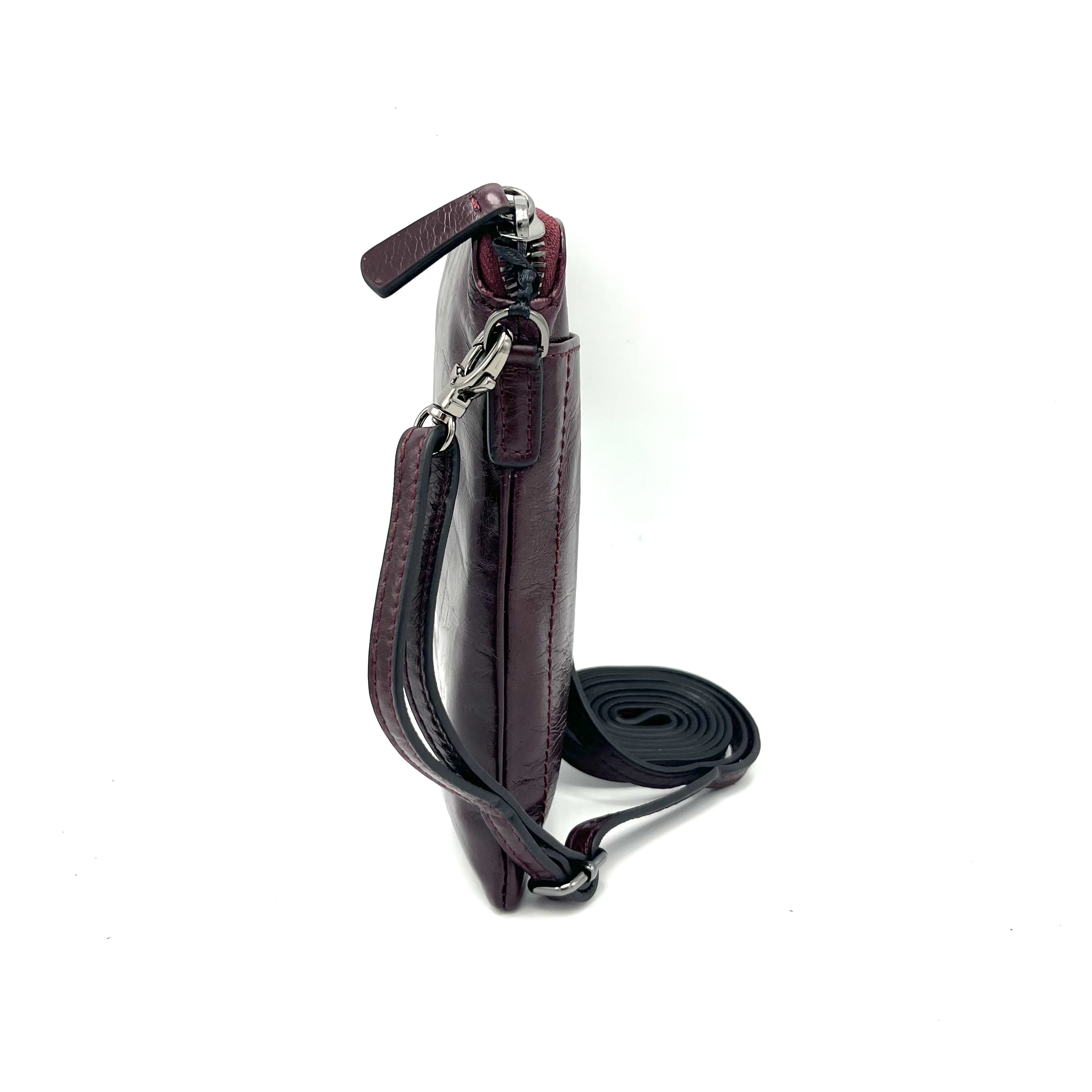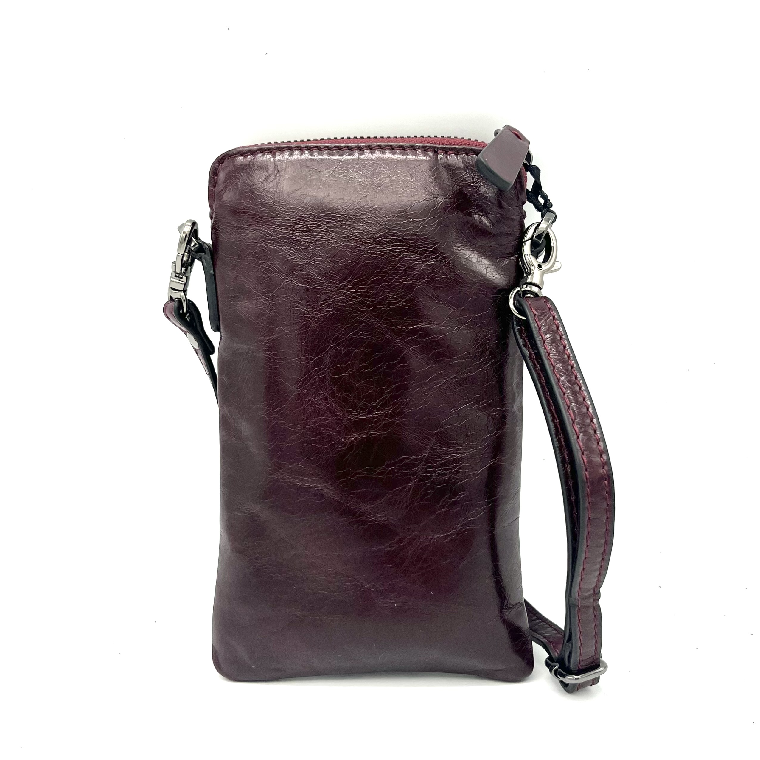 Dit Gianni Conti telefoontasje in Melanzana is gemaakt van hoogwaardig leer en heeft een stijlvol design. Het tasje heeft een verstelbare schouderriem en een vakje voor je telefoon. Draag het tasje crossbody voor een trendy look. De perfecte accessoire voor onderweg! Koop hem nu en draag hem met trots bij elke gelegenheid.