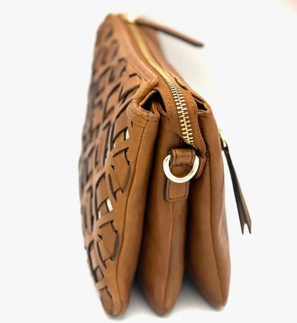 Cognac Drievakstas met Gevlochten Voorzijde en Verstelbare Band