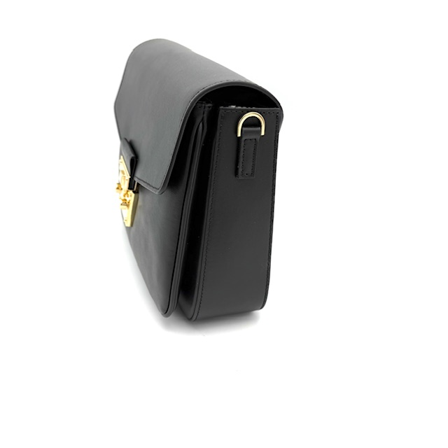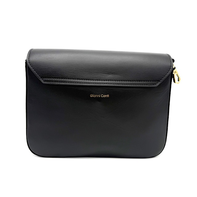 Deze Gianni Conti kleptas straalt pure high fashion uit en doet qua uitstraling niet onder voor een top designer tas. Het elegante zwarte leer, gecombineerd met het moderne goudkleurige slot, maakt deze tas een echte eyecatcher – stijlvol, luxe en helemaal van nu.