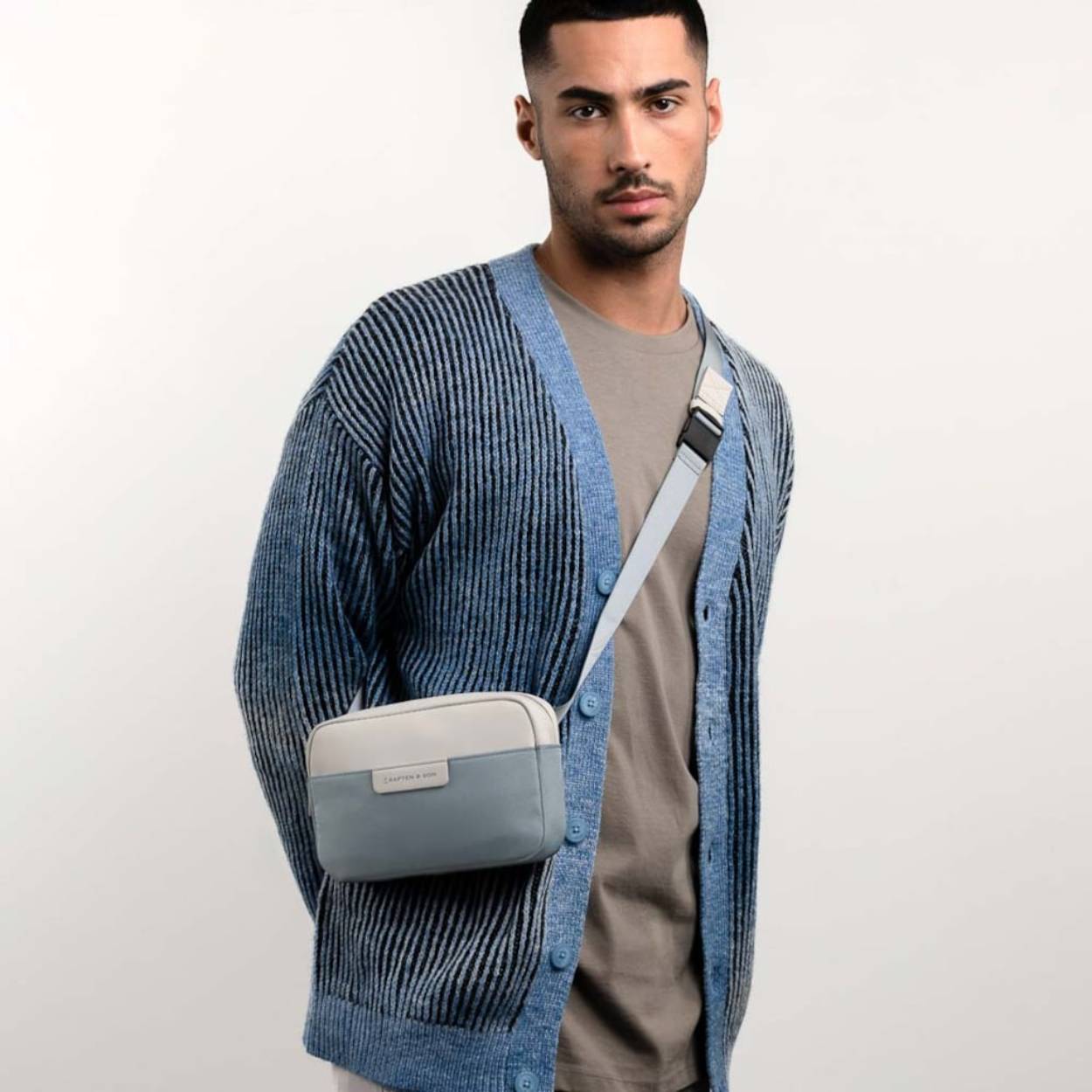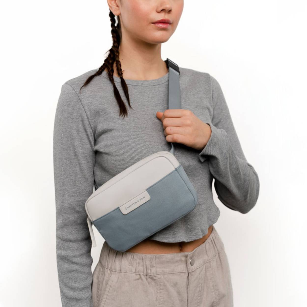 stijlvolle chest-bag met subtiele witte verfspetters